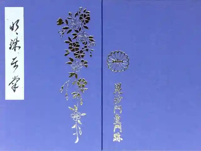 表は、宸殿前で見られるしだれ桜「般若桜」が金色で描かれている。背景の紫とともに上品な感じです。