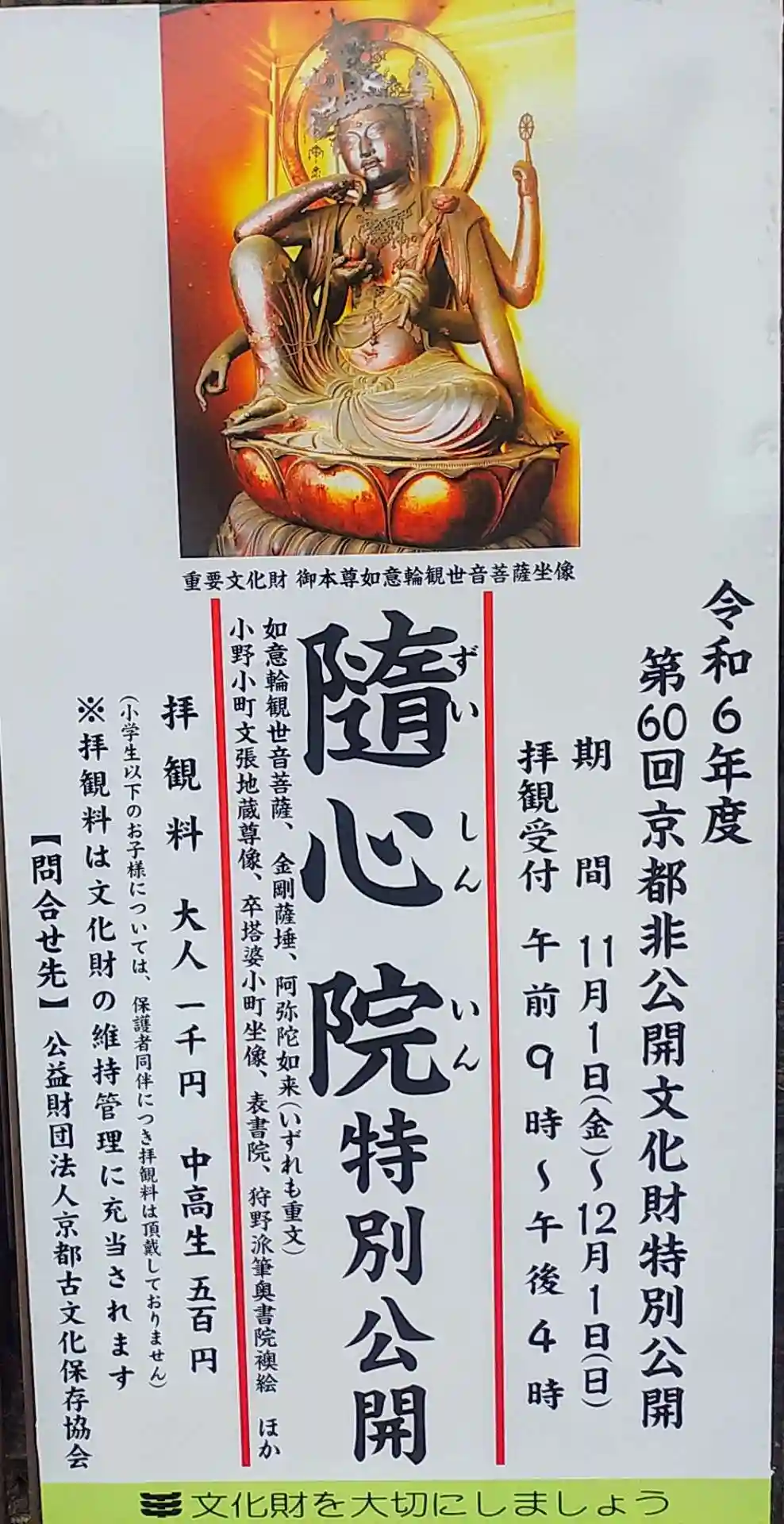 御本尊も間近で拝見でき、如意輪観世音菩薩様が生きているようでとても神々しかったです!