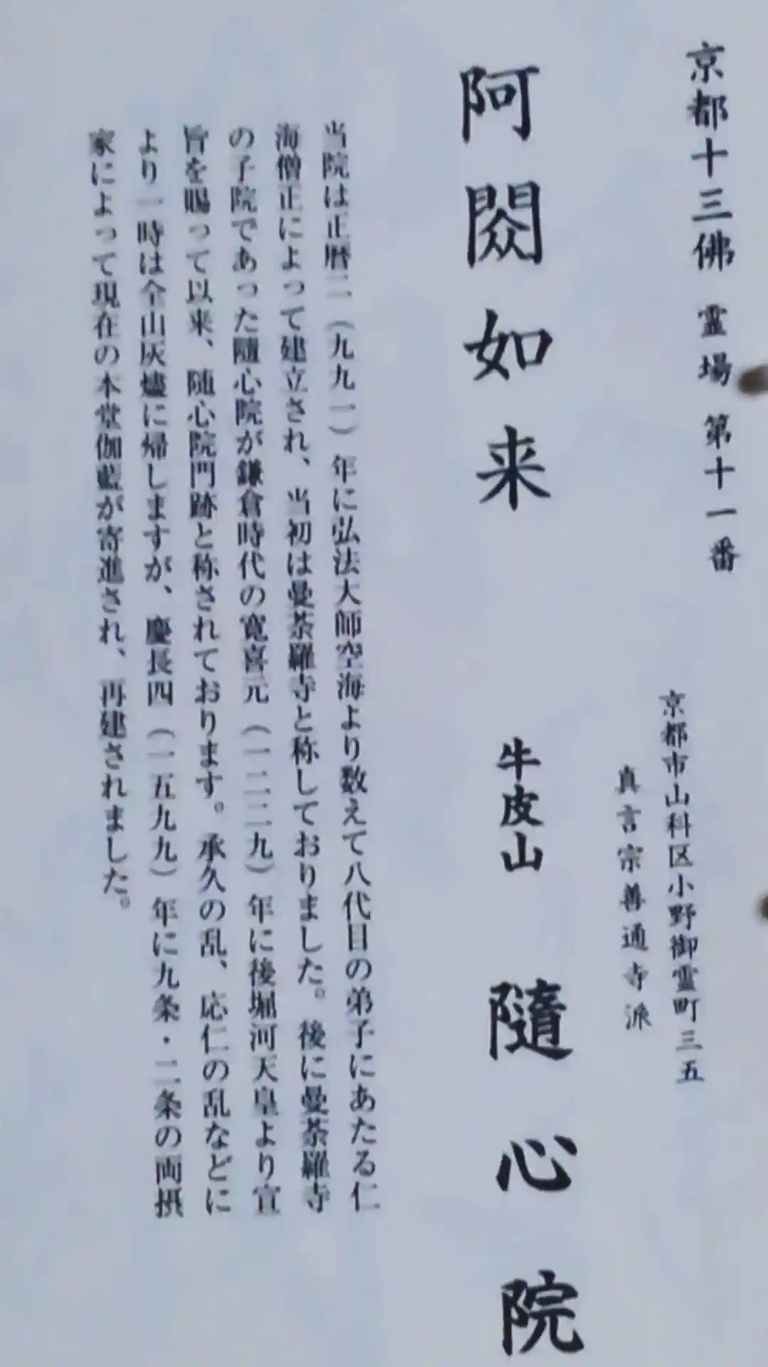 足跡 京都十三佛 十一札