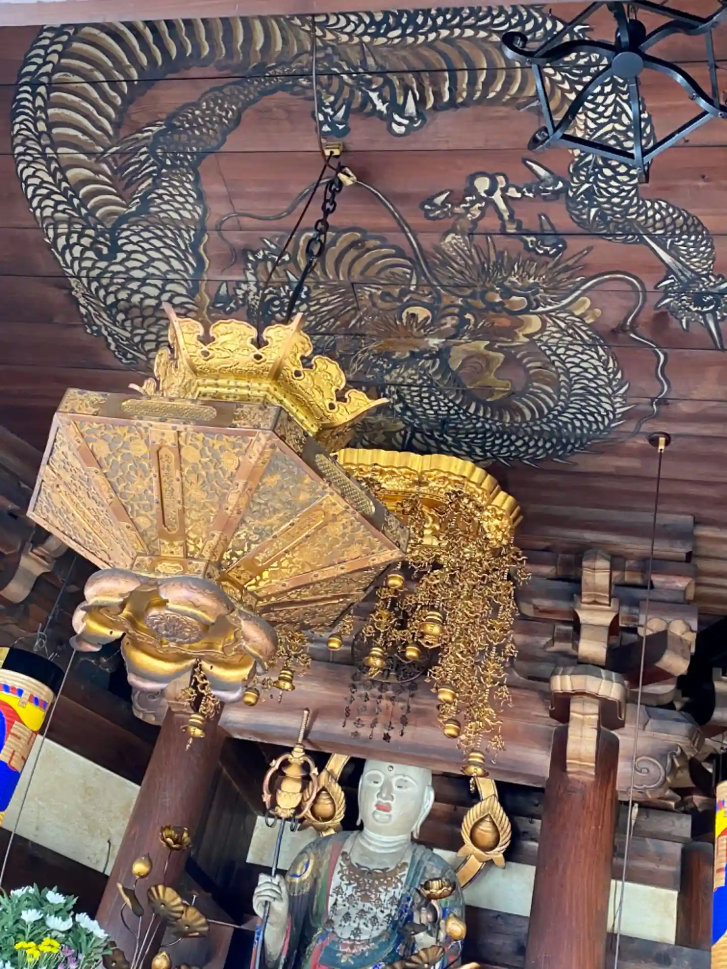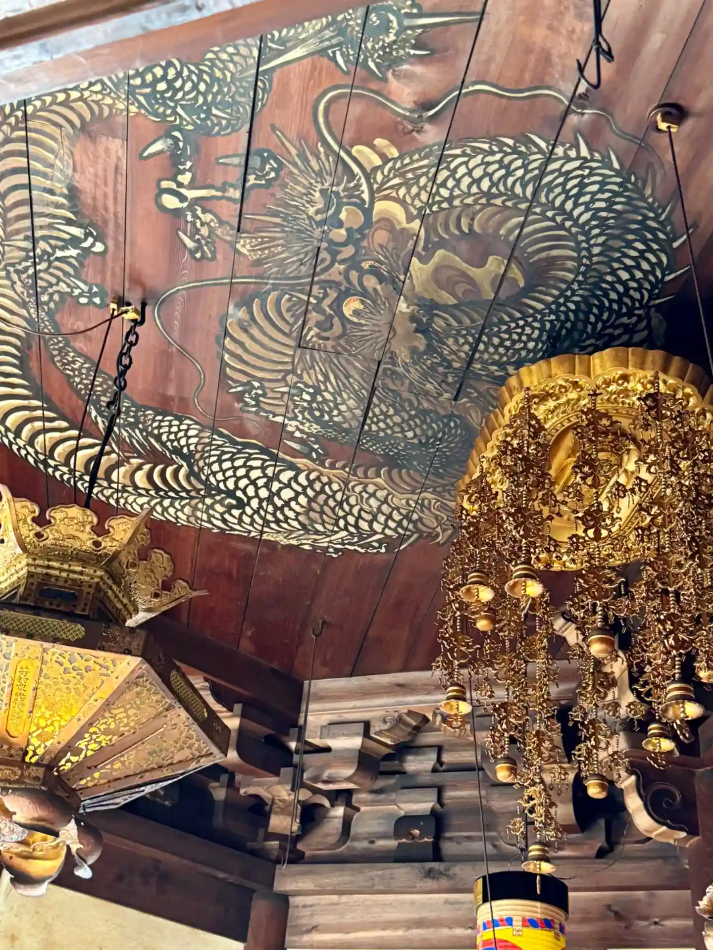 ヒノキの鏡天井に上田萬秋(まんしゅう)による龍図