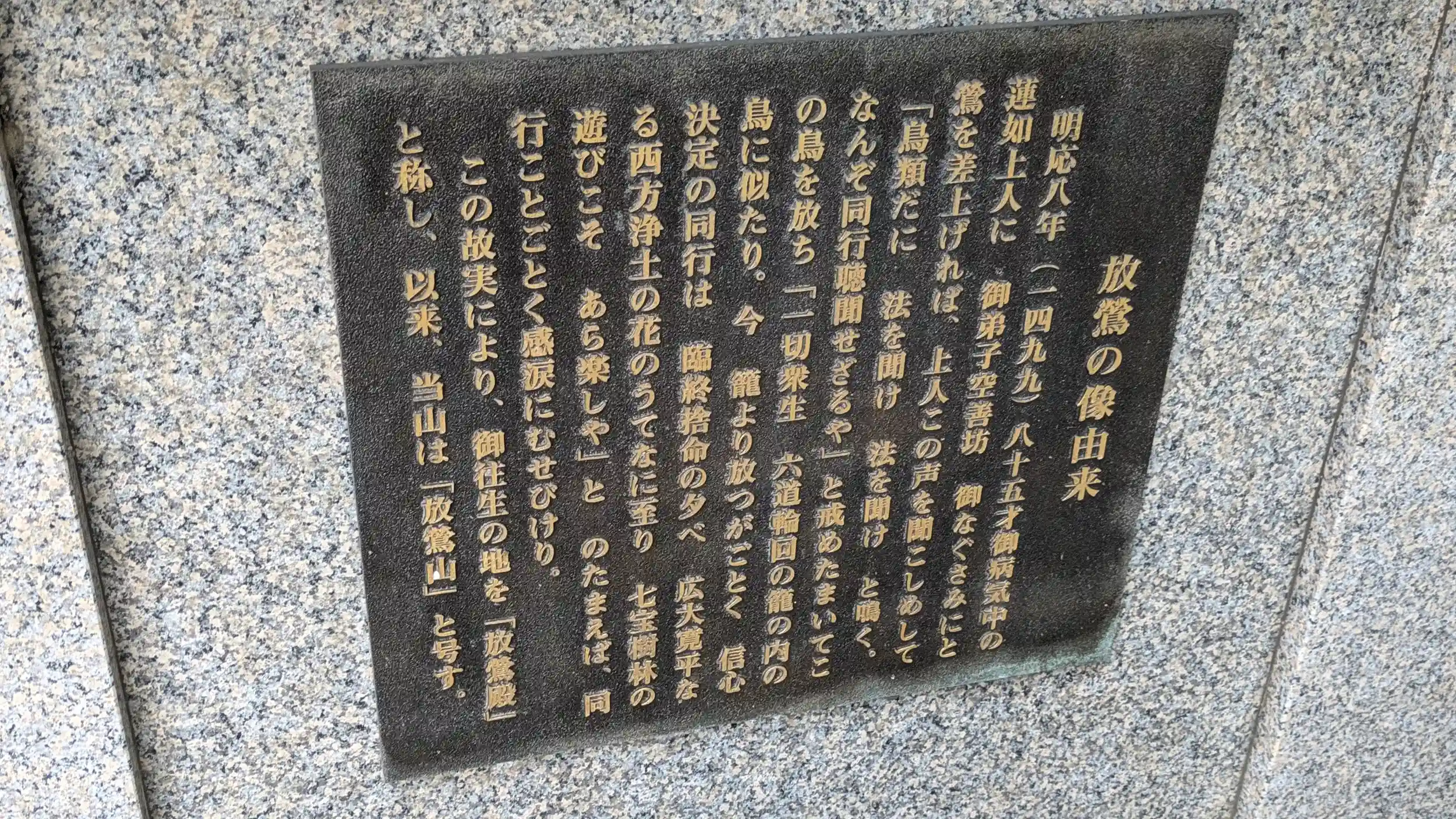 真宗本願寺派の西宗寺へ。山門前には「蓮如上人往生之地」の大きな石碑がありました。山門には柵がありましたが通用口が開いていたのでお詣りに😊境内は結構シンプル。本堂・庫裏に鐘楼があり、本堂の前には蓮如上人の放鶯の像がありその由緒には鶯の「ホーホケキョ」の鳴き声は「法を聞け、法を聞け」と聞こえたそうで「鳥類だに法を聞け法を聞けと鳴く。なんぞ同行聴聞せざるや」と鶯を放ったのだそう。「一切衆生六道輪廻の籠の内の鳥に似たり。今、籠より放つがごとく信心決定の同行は臨終捨命の夕べ広大寛平なる西方浄土の花のうてなに至り、七宝樹林の遊びこそあら楽しや」とのたもうたそうです。