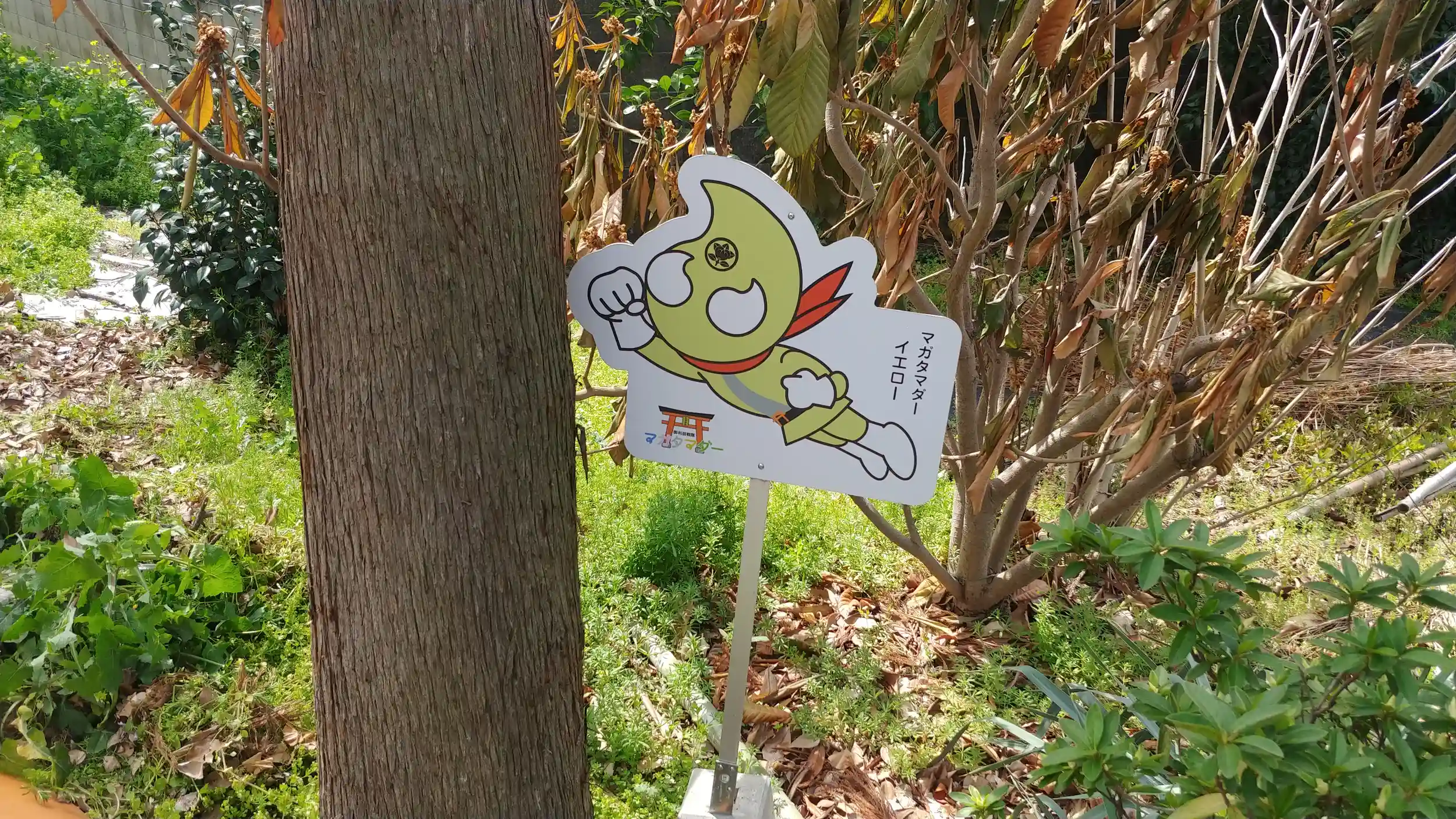 境内いたるところにいるのが神社のマスコットキャラクター・マガタマダー。