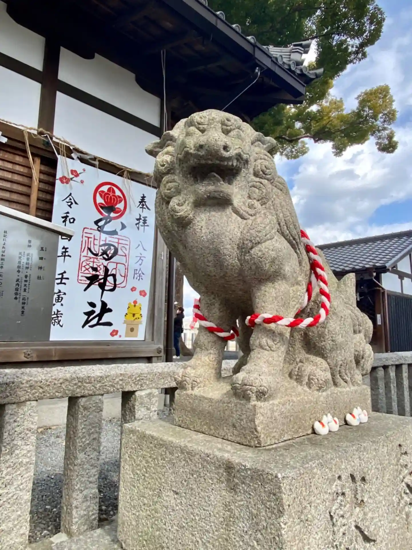過去参拝記録。もはやコスプレしてない狛犬さんが寒そうに見える・・・🤣コロナ禍だったので手水舎もいた…