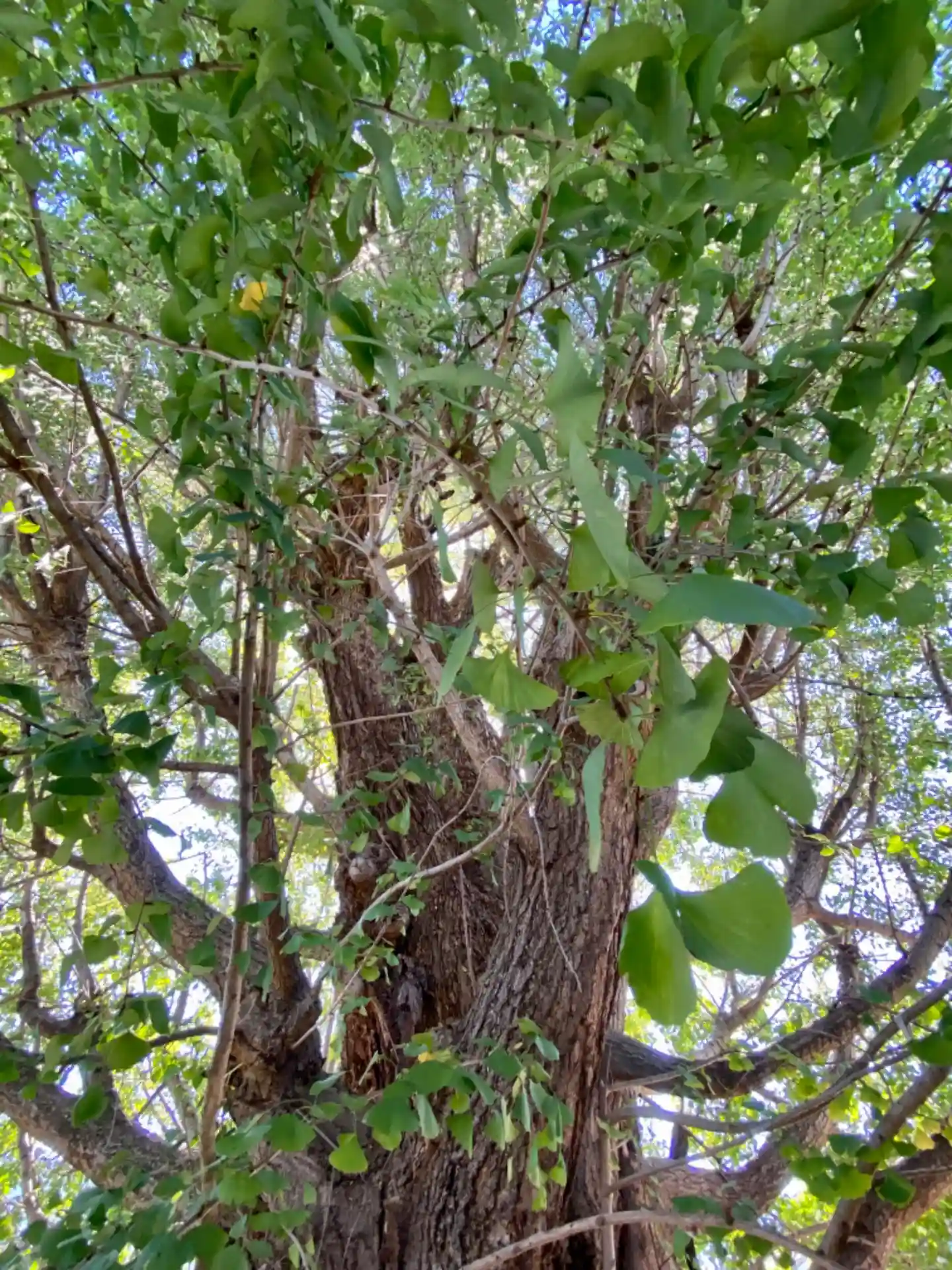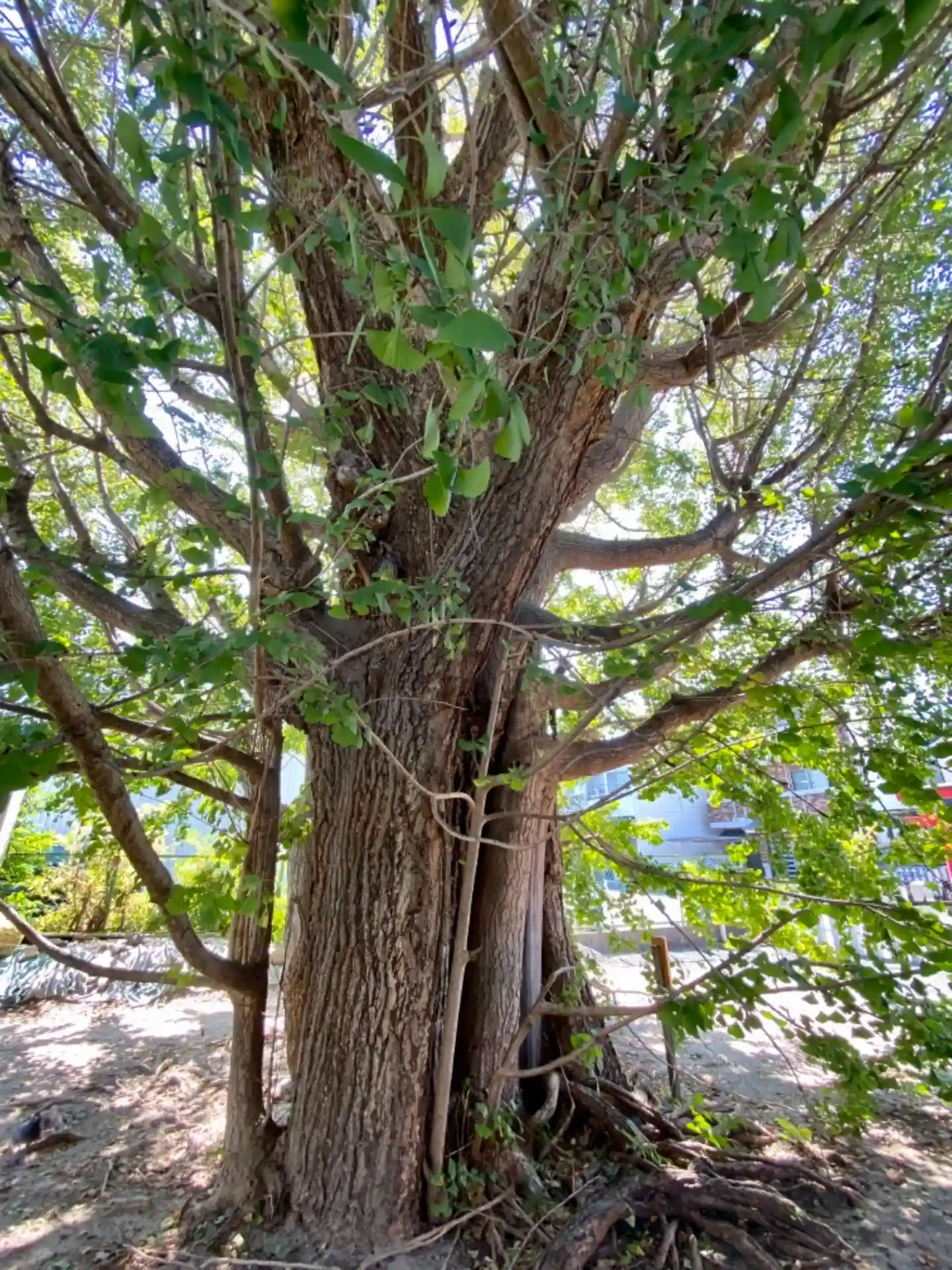 見事ないちょうの木の奥に二つの祠