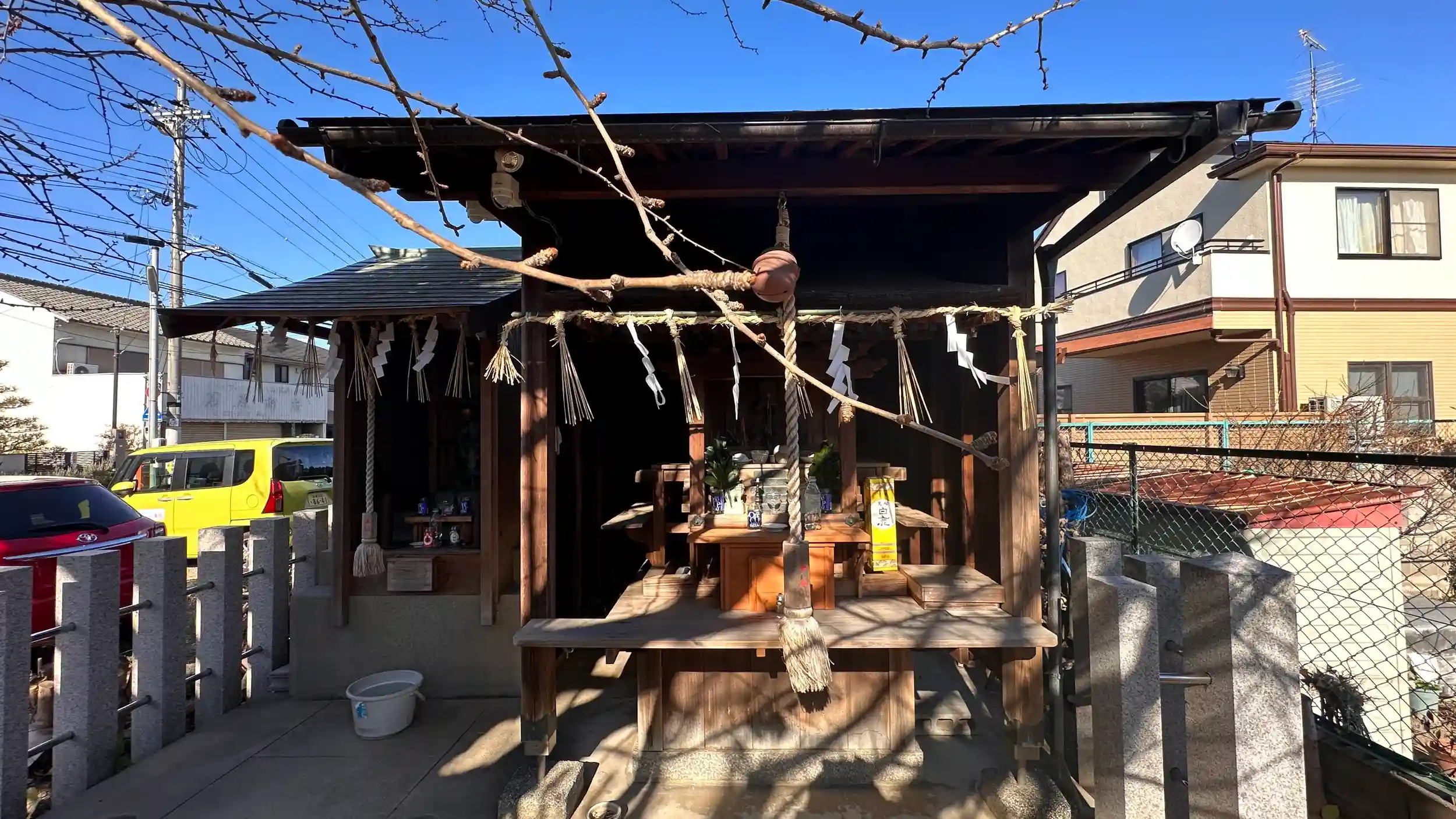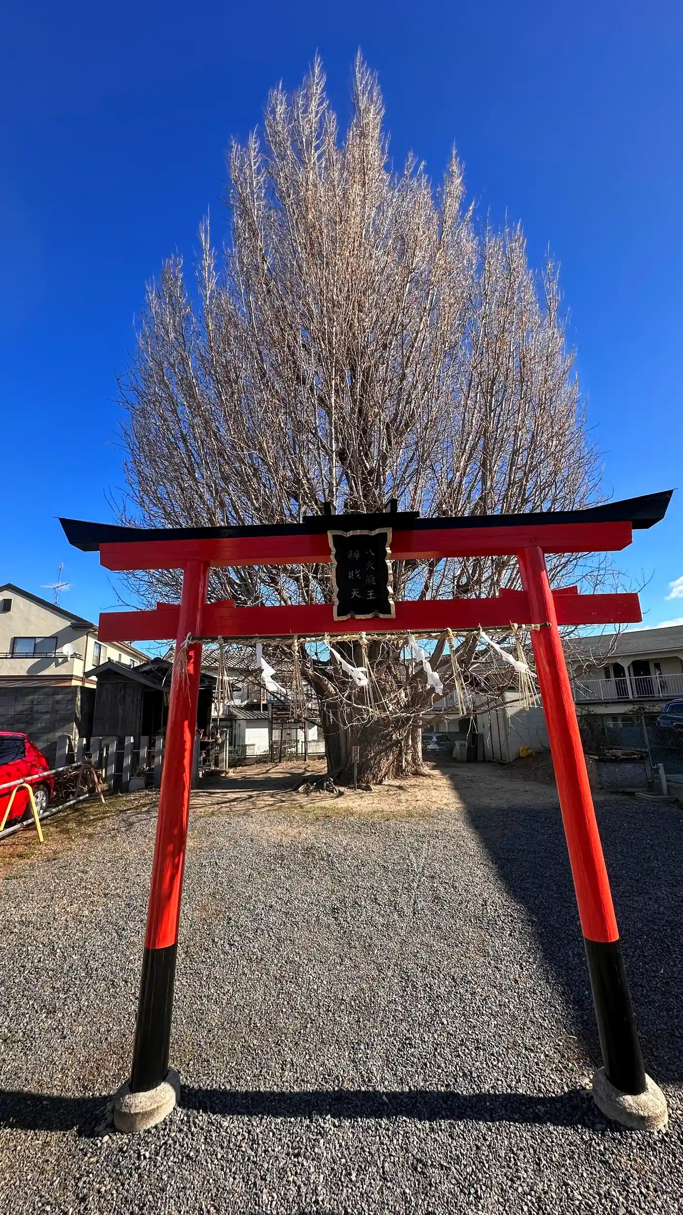辰年に龍神様参拝③ 金の玉を咥えておられます、早咲きの河津桜の名所「淀水路」近くに鎮座されています、境内には「区民の誇りの木」大きな銀杏の巨樹があり紅葉の季節には楽しめそうです。ご由緒等は不明です