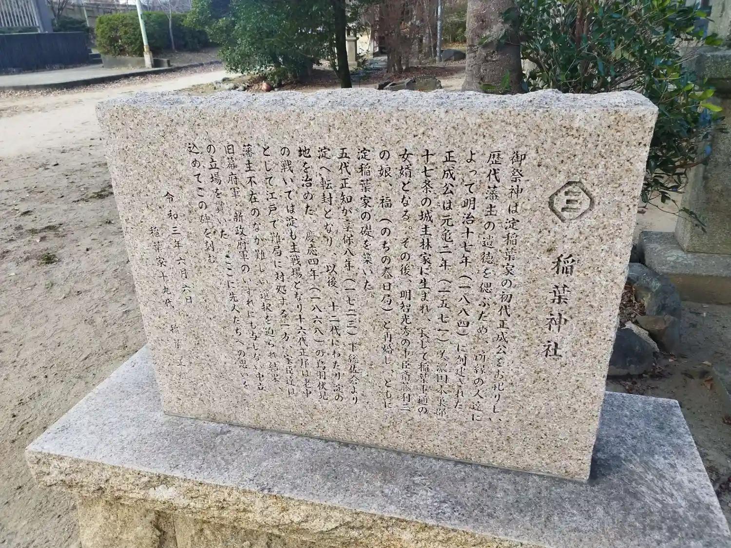 ご祭神は、 稲葉家の祖・稲葉佐渡守・越智正成