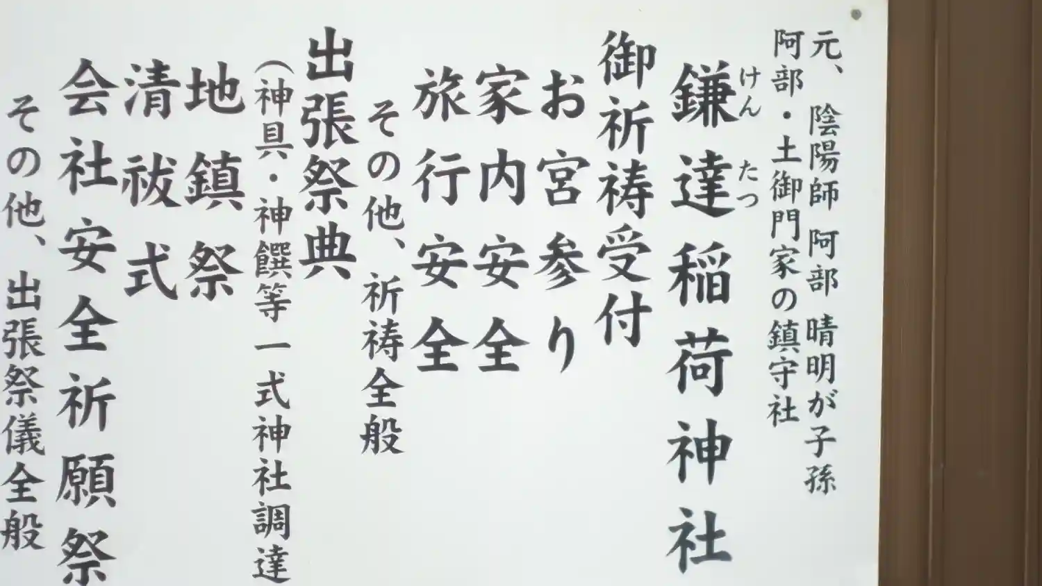 御祭神は倉稲魂大神と猿田彦大神で、安倍晴明の子孫・安倍土御門家の所縁の神社です。
