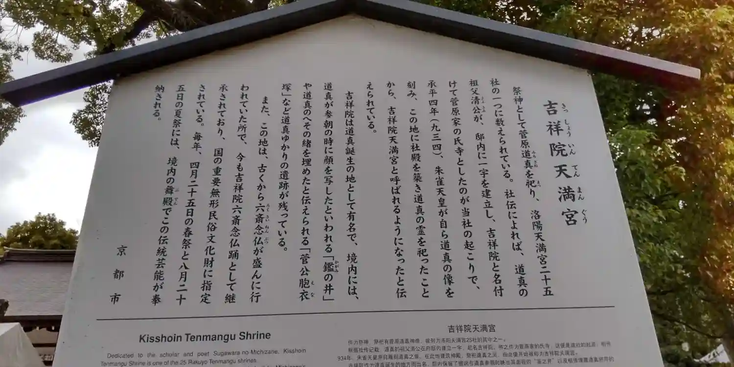 もとは菅原道真の祖父の屋敷で吉祥天を奉る神仏習合社であったことから…
