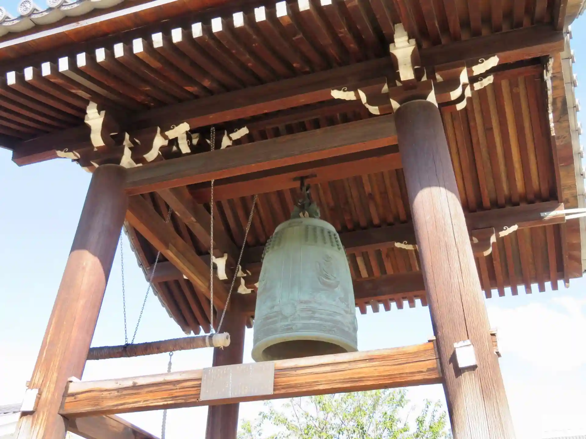 足利尊氏寄進の鐘のレプリカが吊るされています