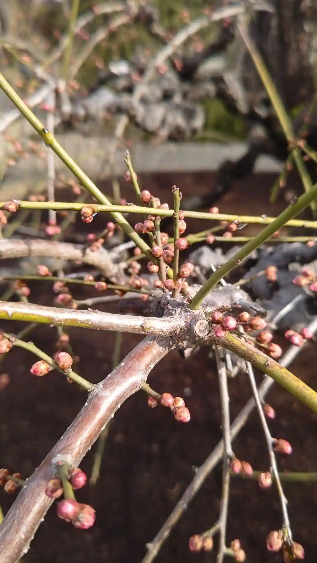 梅の枝だけズームで撮る。もうすぐ咲きそうな予感(^o^)