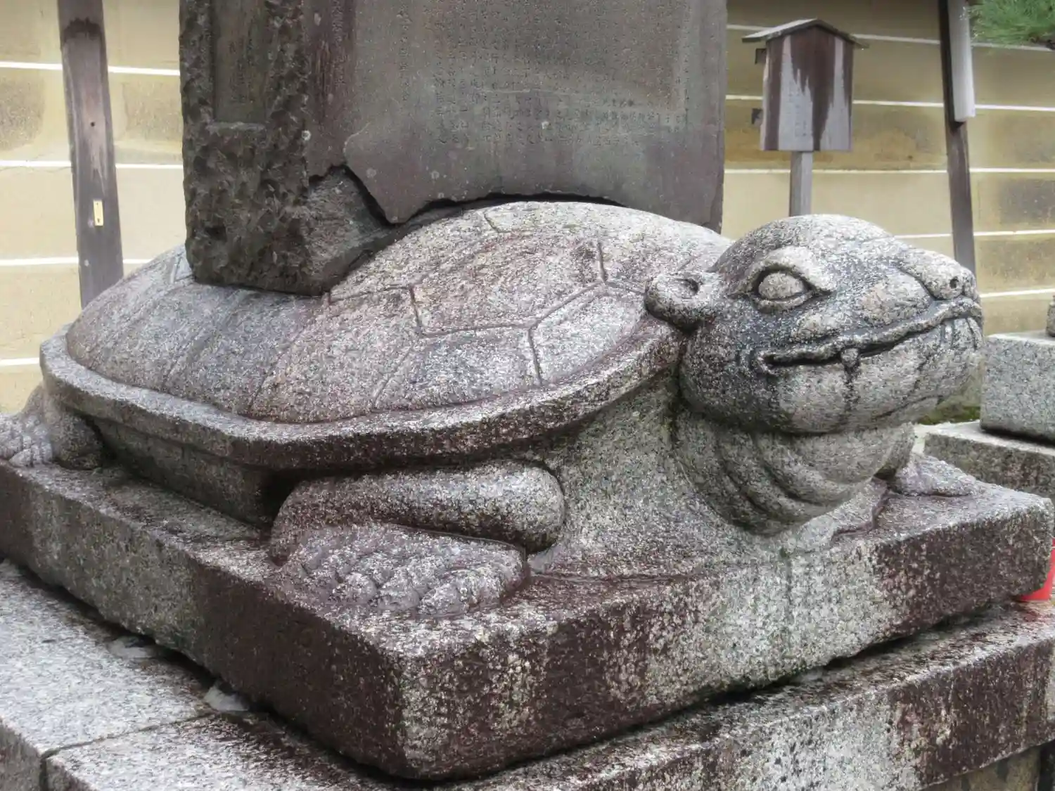 台座の亀のような生き物は贔屓(ひいき)といって、患部をさすると万病に効くらしい