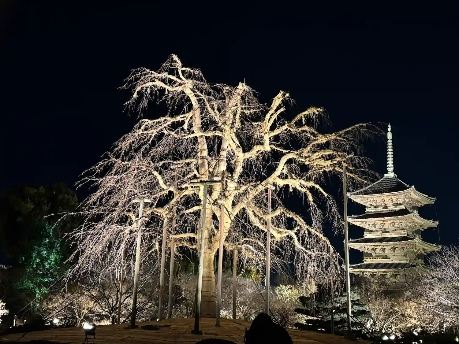 日中雨の中拝観し 日没辺りで雨が止んできたのでライトアップされた五重塔を撮ってみました