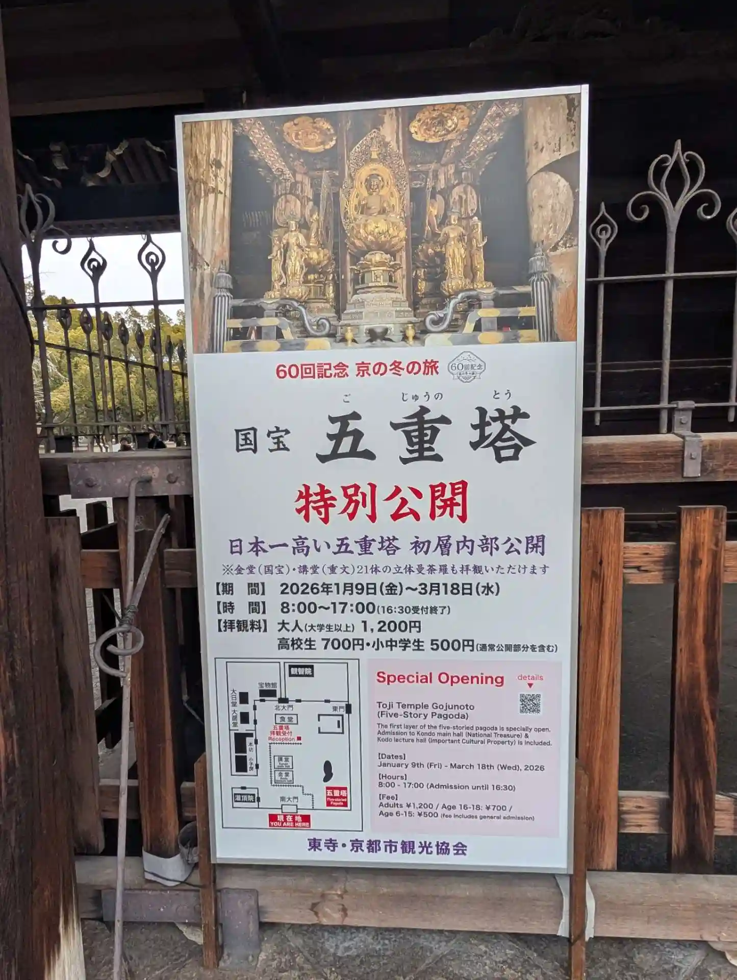 朝早くから湯豆腐食べたさに京都へ向かい、東寺さんに参拝しました。五重塔が特別公開中でした。