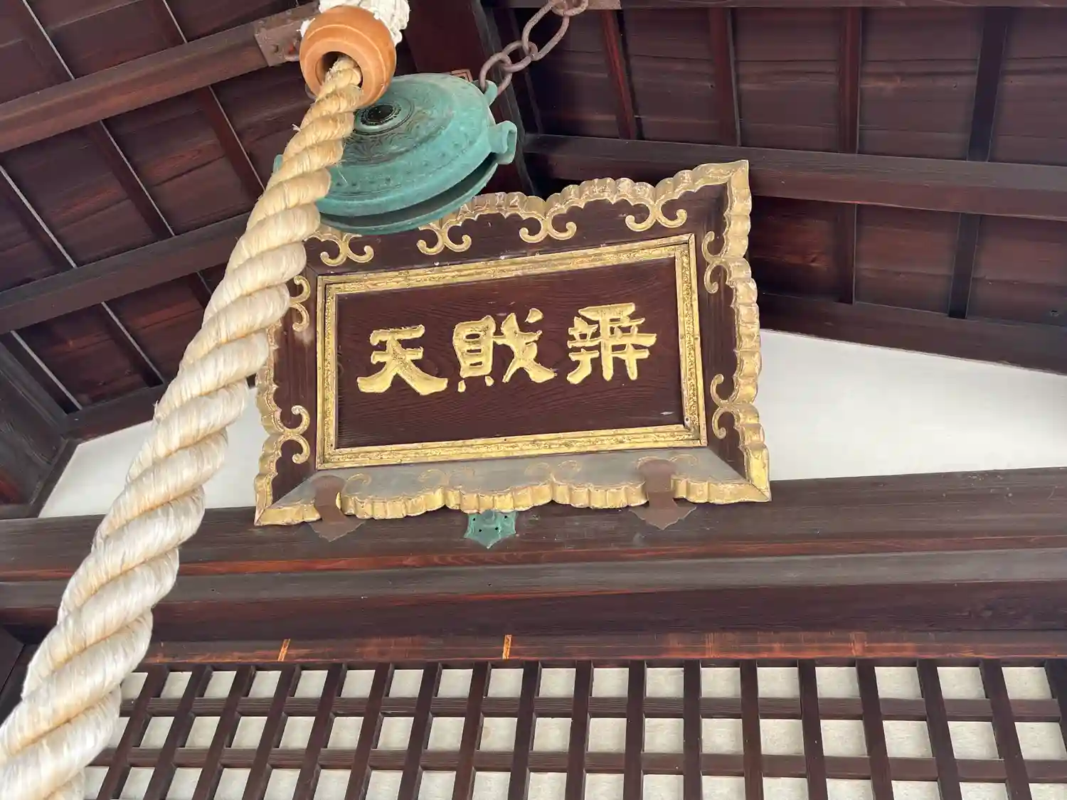 足利尊氏寄進の鐘のレプリカが吊るされています
