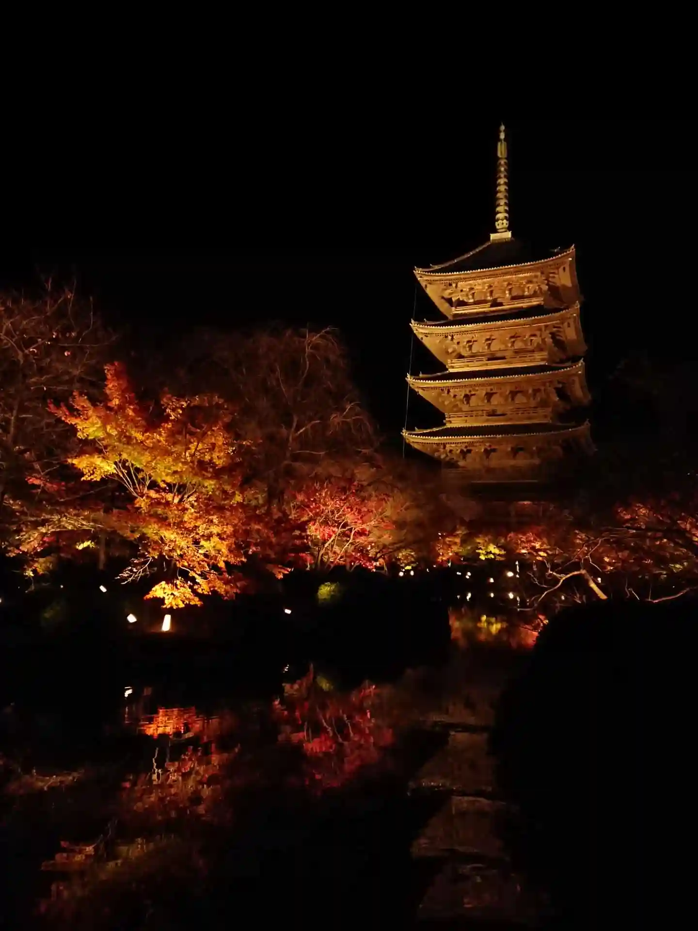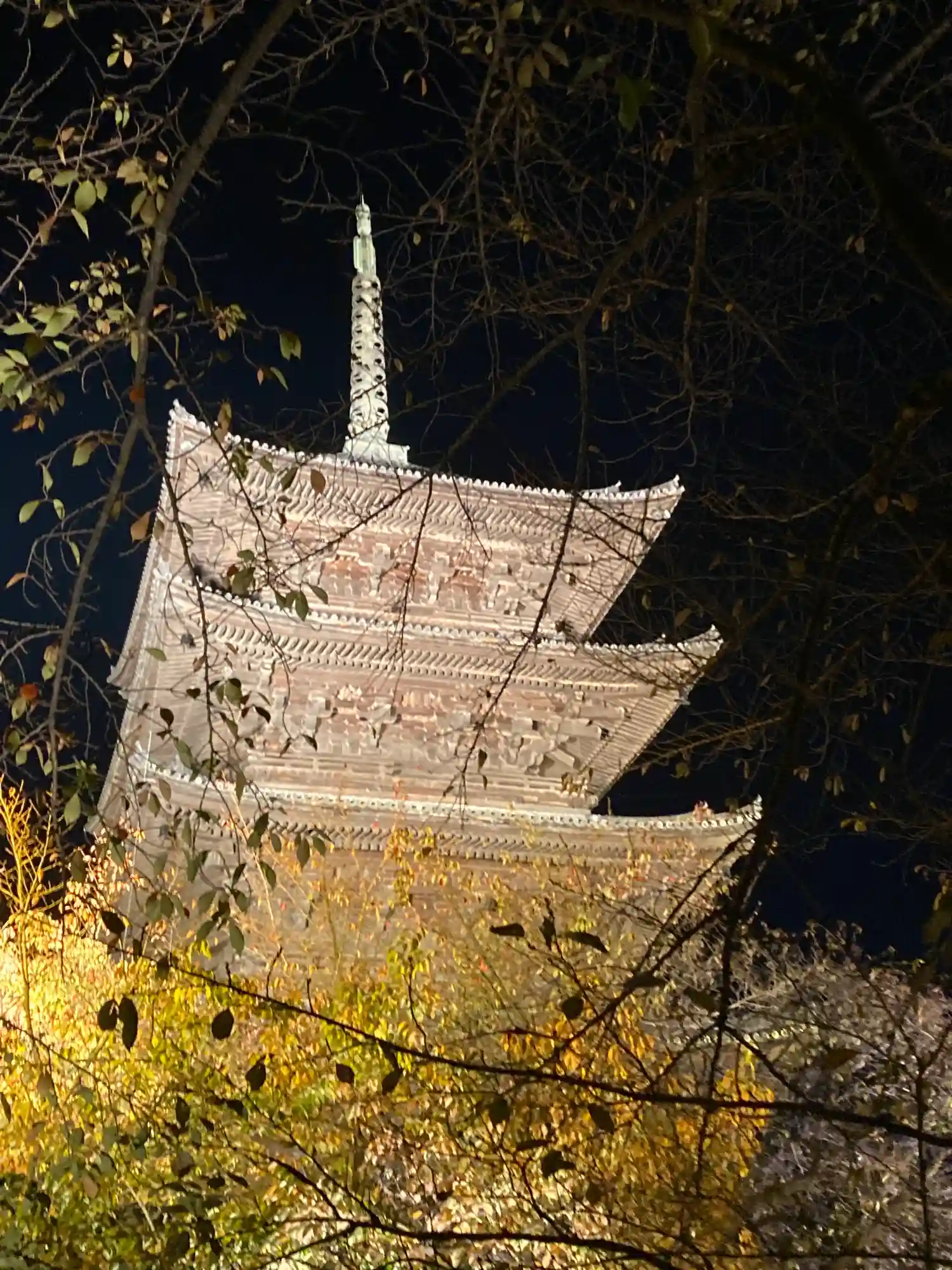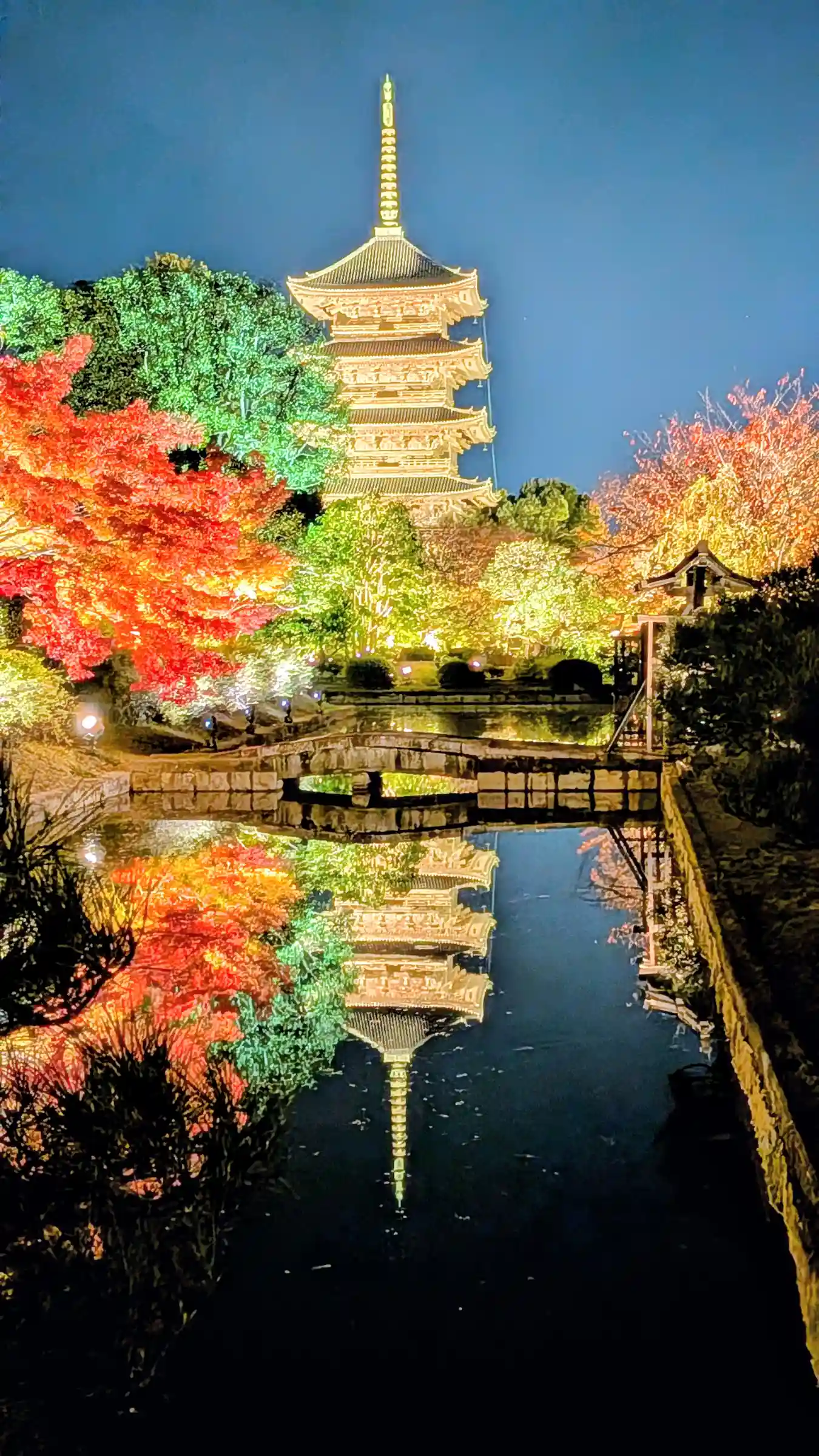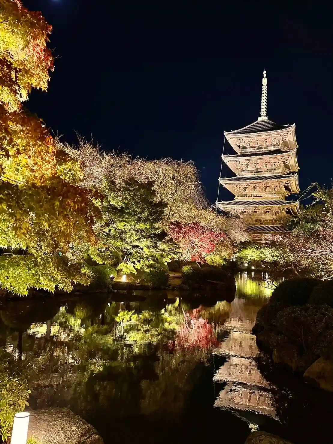 秋の紅葉ライトアップに家族で参拝。五重塔や仏像の大きさに圧倒されました。紅葉もめちゃくちゃ綺麗で、…