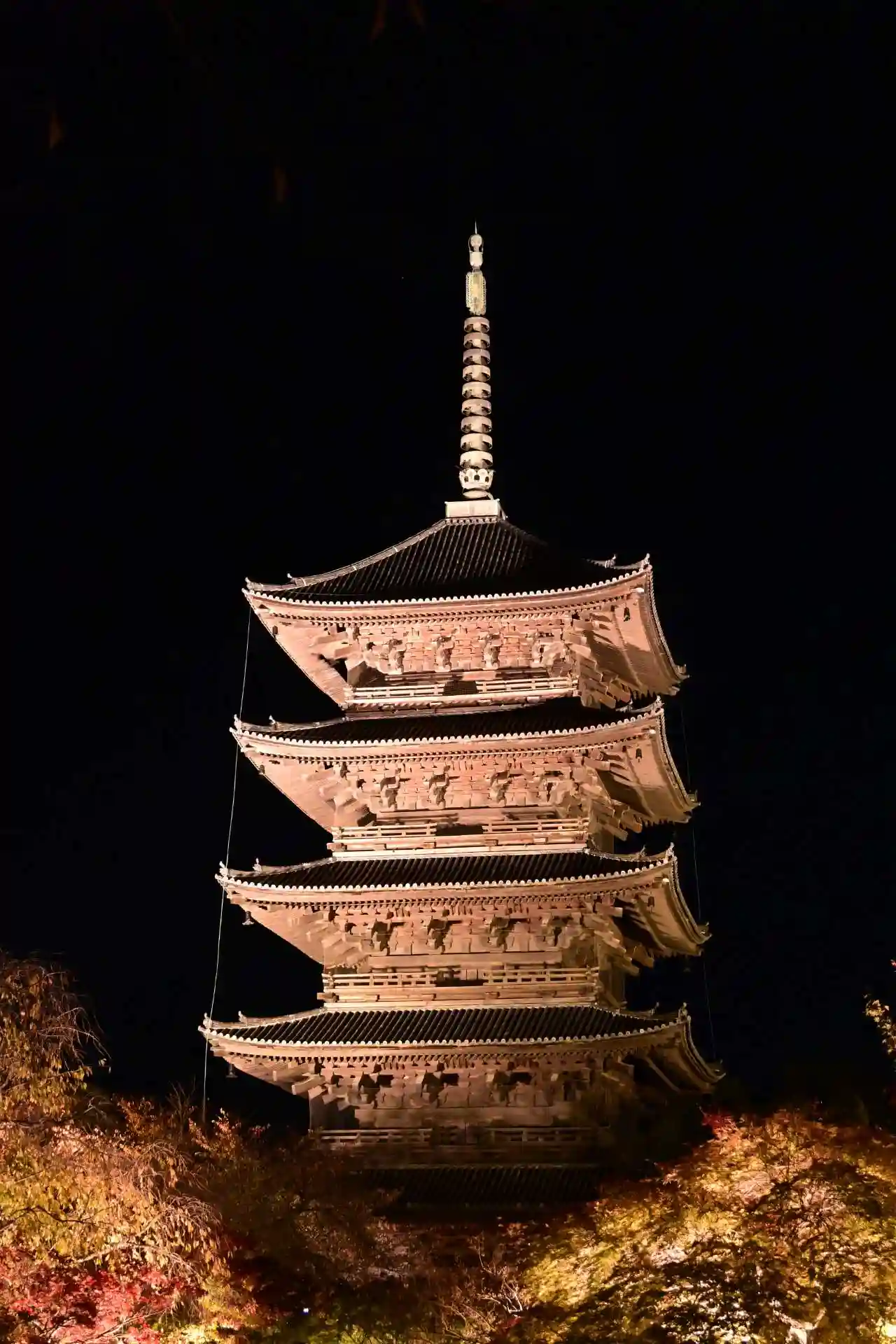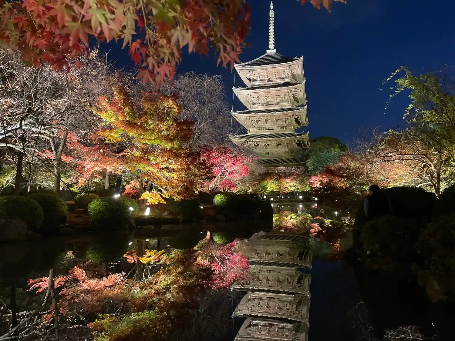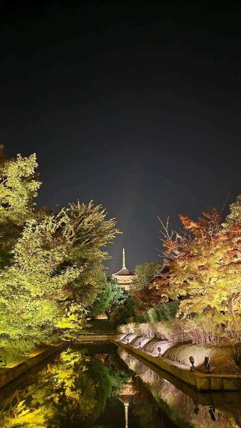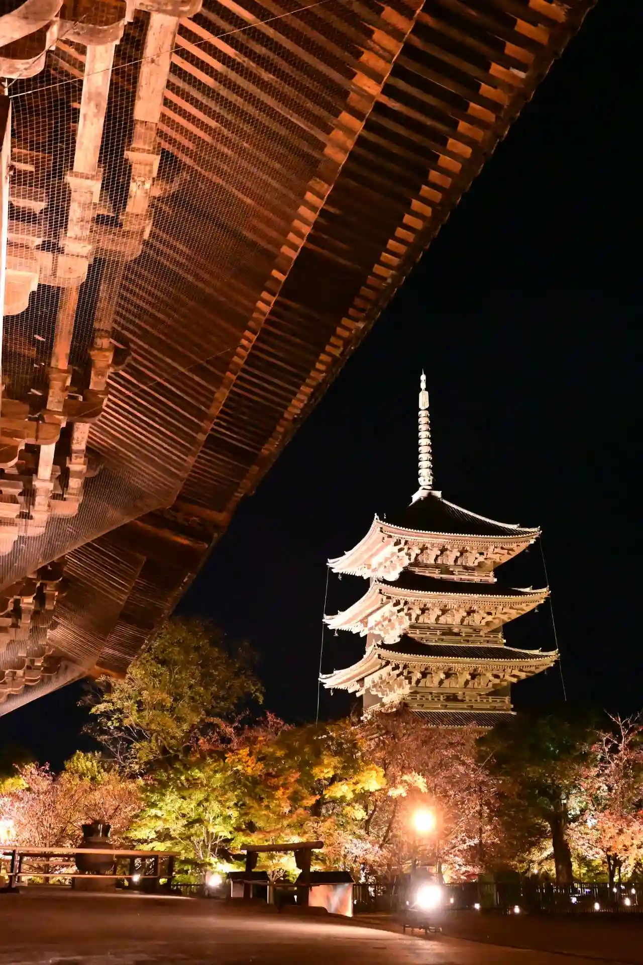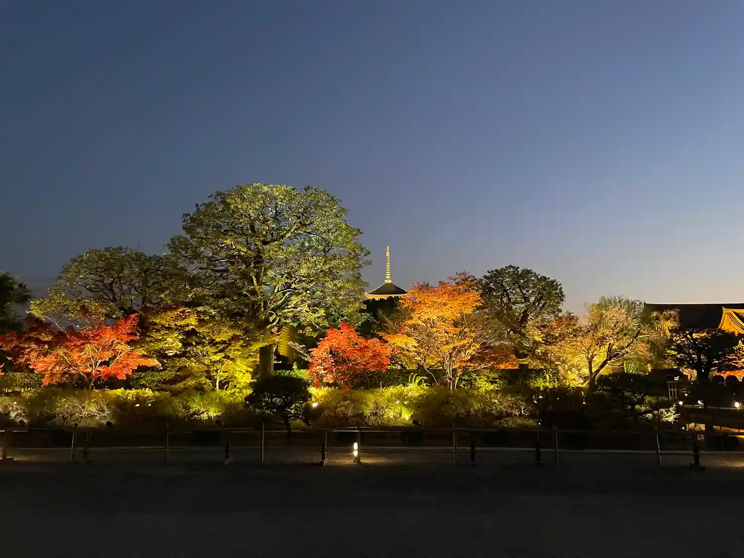 秋の紅葉ライトアップに家族で参拝。五重塔や仏像の大きさに圧倒されました。紅葉もめちゃくちゃ綺麗で、…