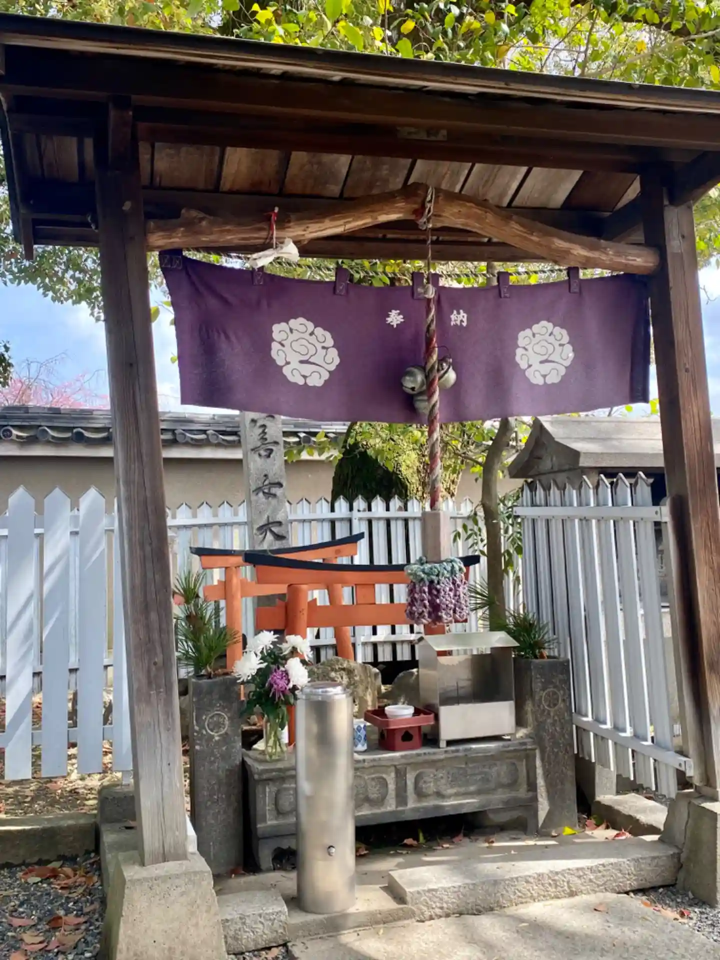 場違いにも見える銀柱。実はコレ、最新の賽銭箱。風情よりも実用本位。
