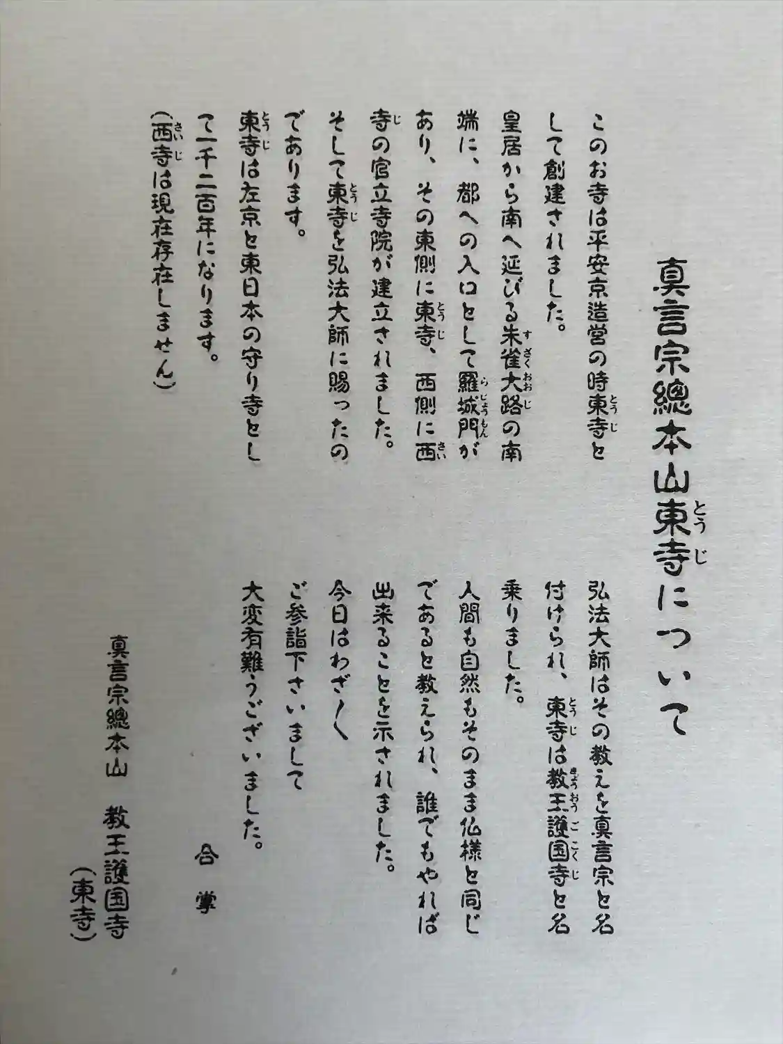 五重塔で有名な東寺こと「八幡山 教王護国寺」に参りました。