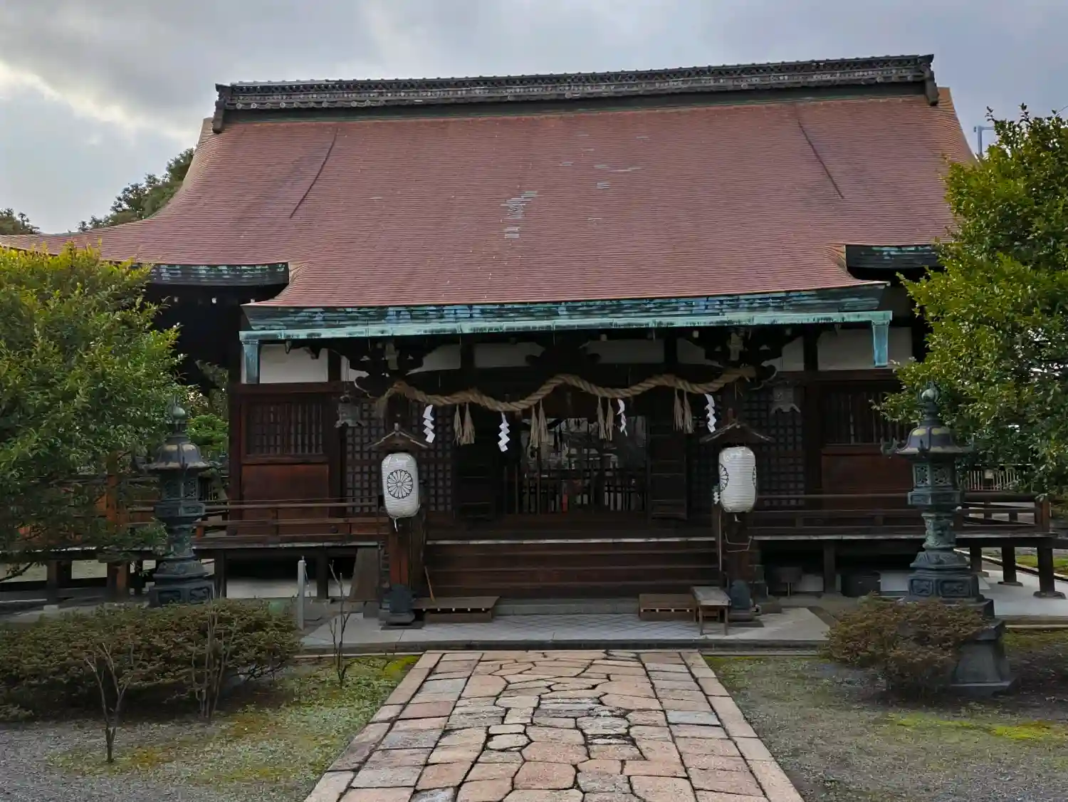 といっても本殿へも拝殿へも近づけないんです。手前の拝所でご挨拶。
