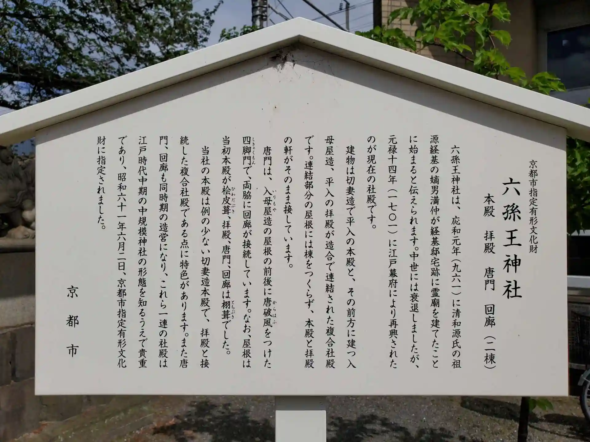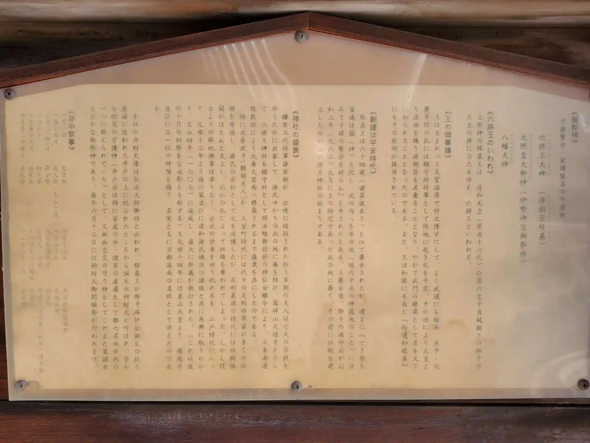 創建は平安時代、六孫王(経基王)の邸宅があったこの地に応和3年(963年)に社殿を建てたのが始まりとのこと。