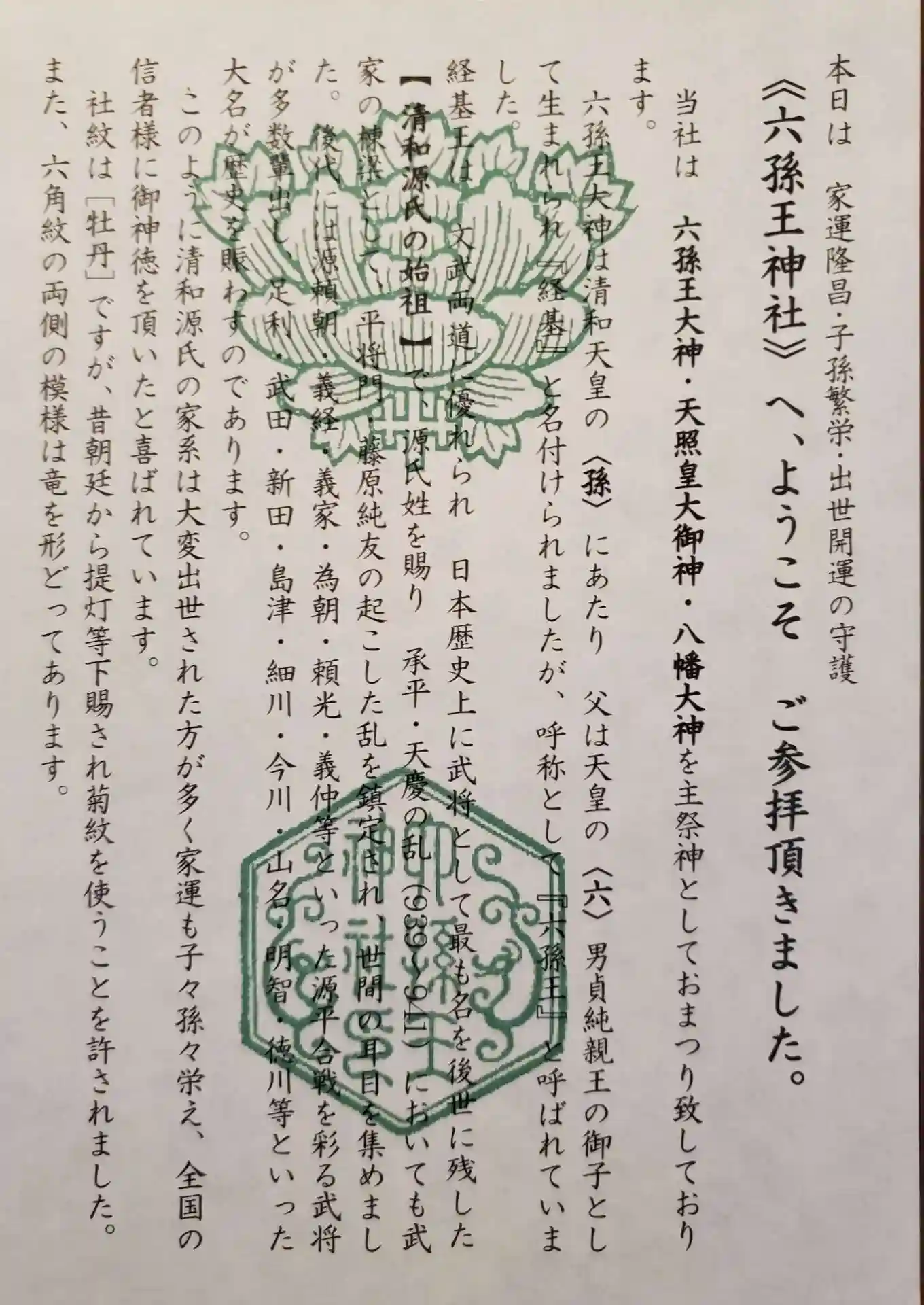 皇室では六男の「六」と、天皇の「孫」から「六孫王」と呼ばれていたそうです。