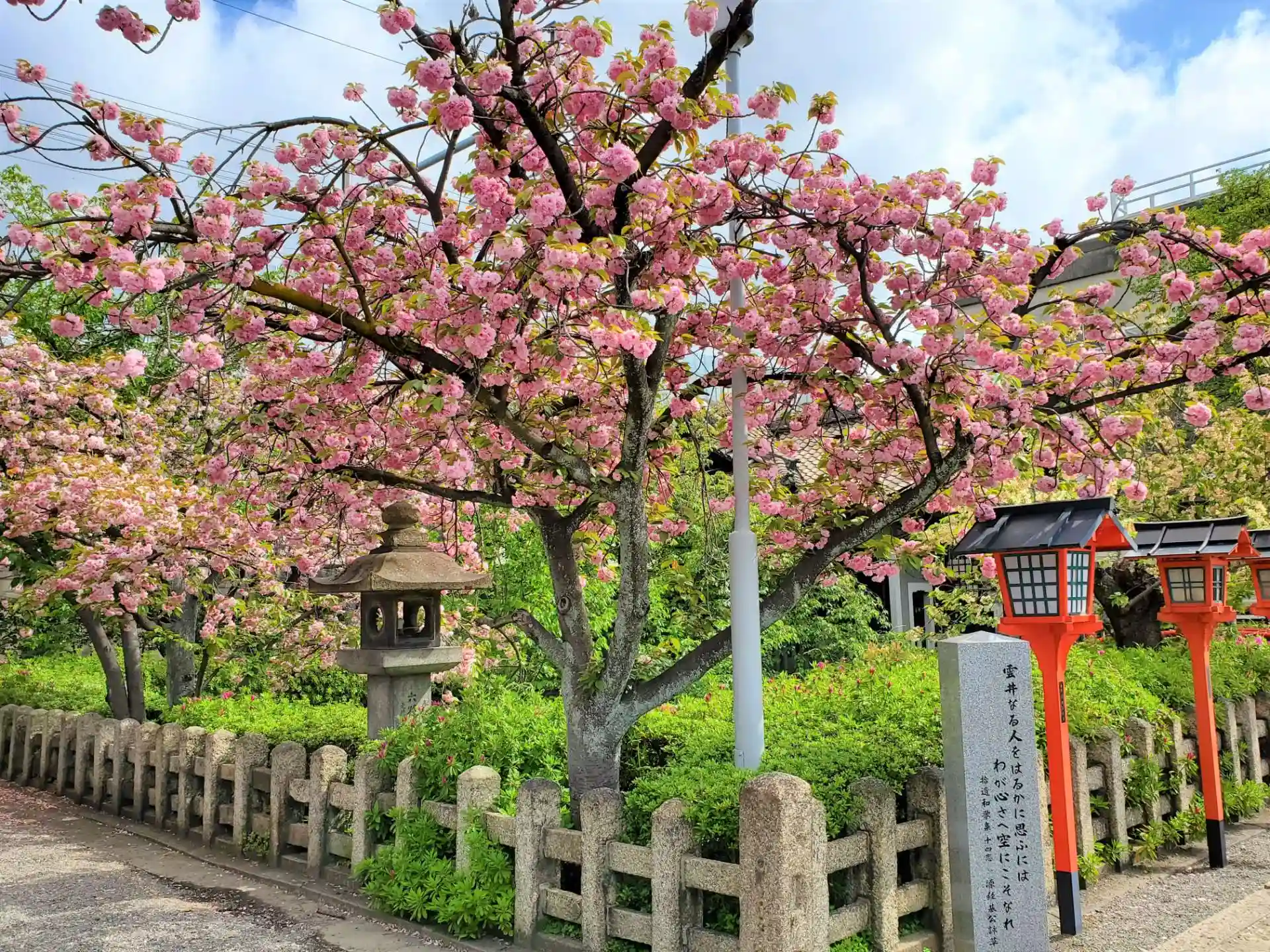 こちらが拝殿前の八重桜