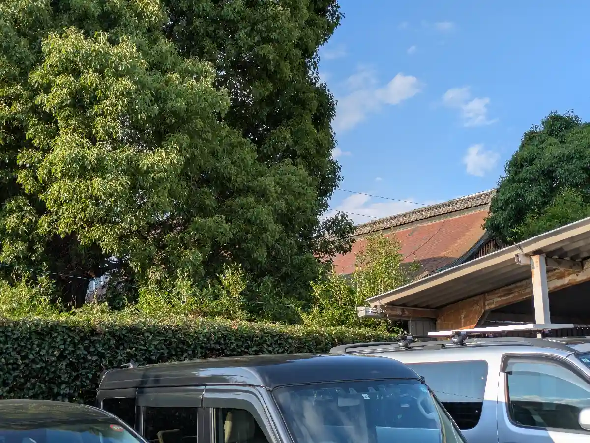 裏から覗いてみたけどご本殿は屋根も見えず…
