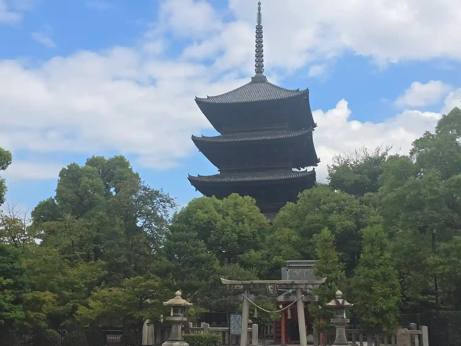 東寺の南大門から入ってすぐ右手にある神社です。東寺が建てられる以前からあった神社で、弘法大師が東寺…