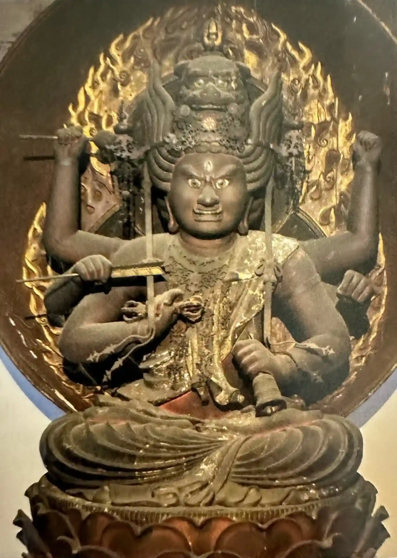 愛染は明王像の中でも好きな像です。赤色の体で様々な武器を持ってるのに縁結びのご利益があるギャップ