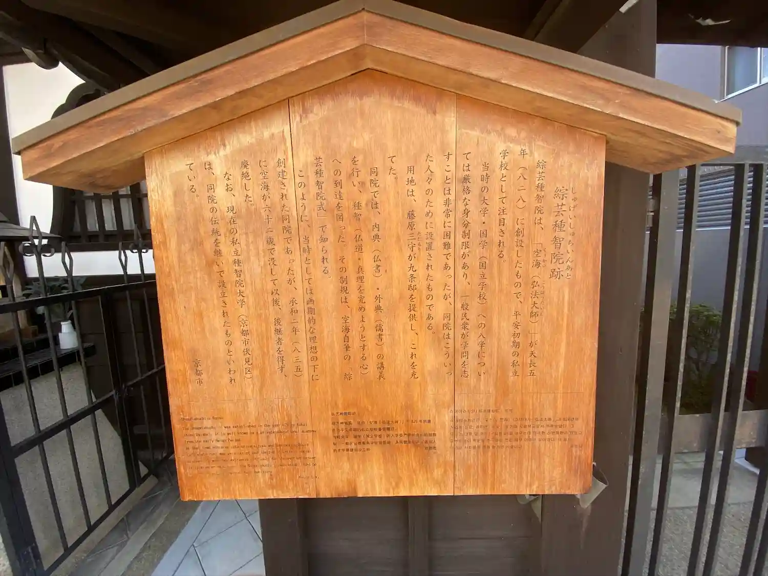 門前に「綜芸種智院跡」碑があります。綜芸種智院は、「空海」が天長五年(828)に創設したもので、平安初期の私立学校です。😊