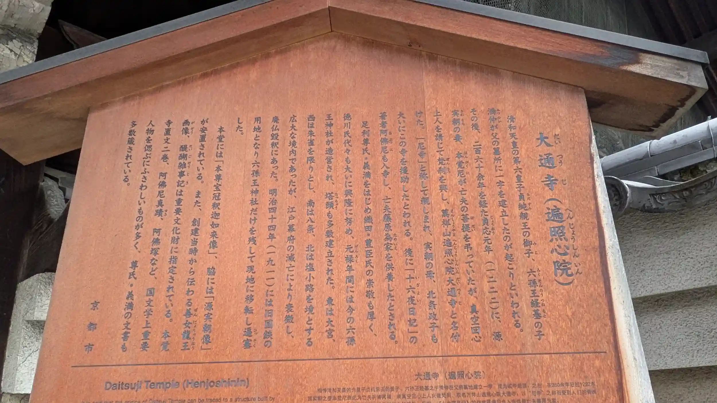 バスで東寺前へ移動し、ホトカミマップだよりに大通寺へ。16時まわってたからか山門は閉ざされておりました。山門前でお詣りし、由緒を見ると六孫王満仲が父の墓所に一宇を建立したのが始まりとのことでかなり広大な寺域であったようで、案内板の内容からすると南は東寺に接し北は梅小路公園一帯がまるまる境内地だったことになり、東寺と同等かより大きい寺域だったと思われます。六尊王神社が鎮守社として創建されたようで廃仏毀釈で分離しさらに国鉄の用地買収で移転を余儀なくされたのでしょう。大聖歓喜天の石標が気になりますが・・・HP見る限りでは拝観はやってないっぽい