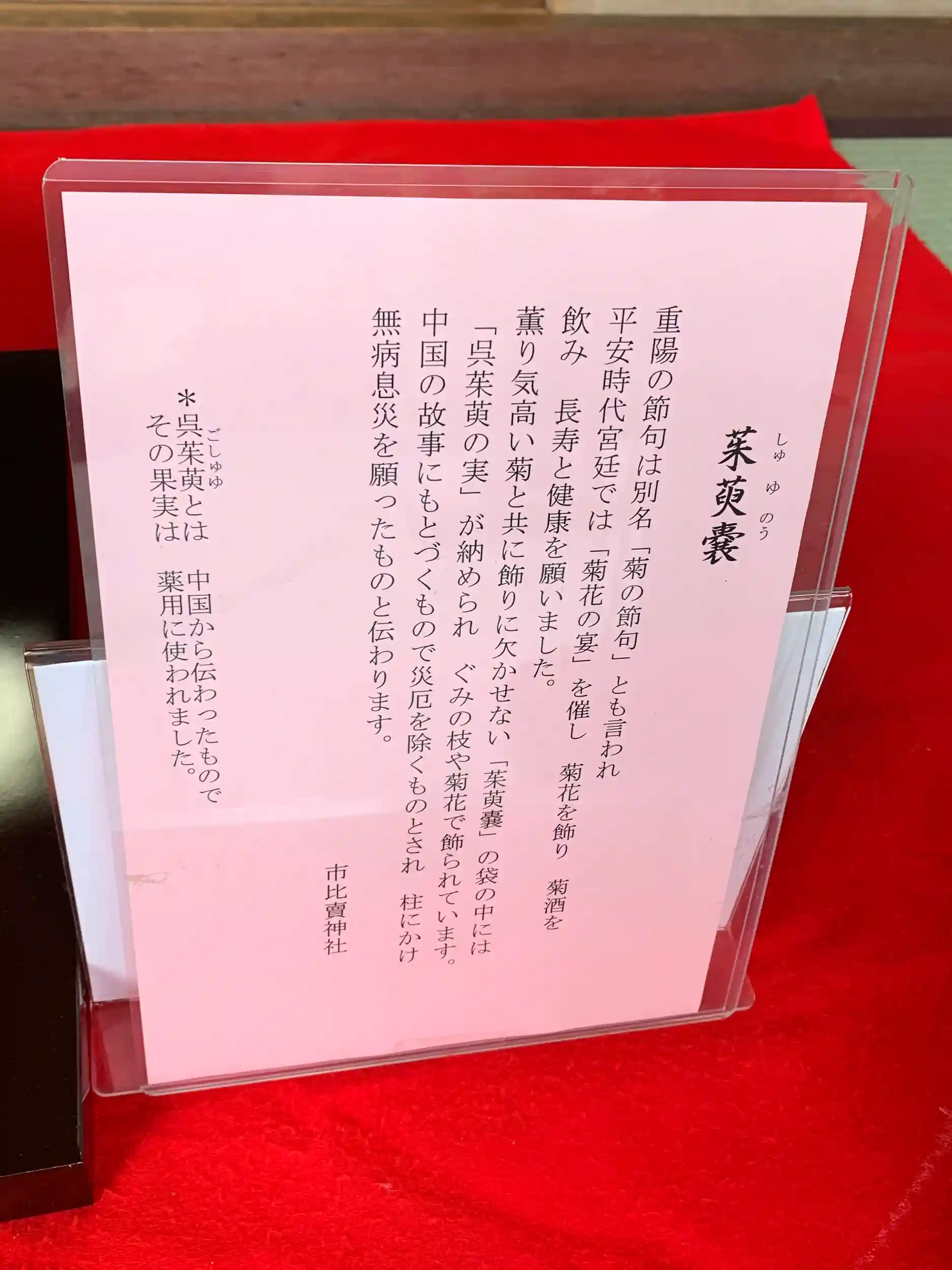 毎年、重陽の節句のお祭りをされていましたが、今年はコロナの影響でお祭り中止でした。重陽の節句のお飾りが見れただけでも良かったです。