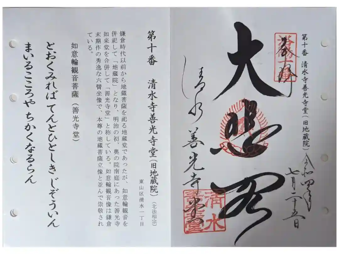 清水寺善光寺堂の御朱印・御朱印帳