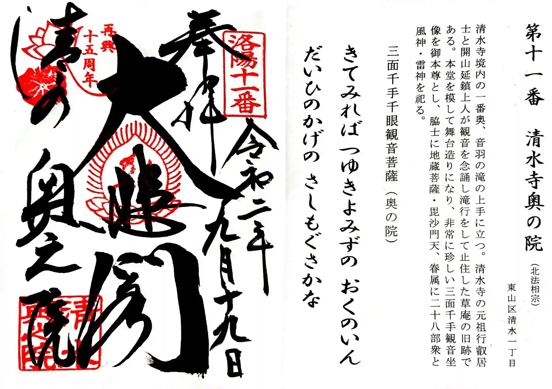洛陽三十三所観音霊場第十一番 清水寺 奥の院