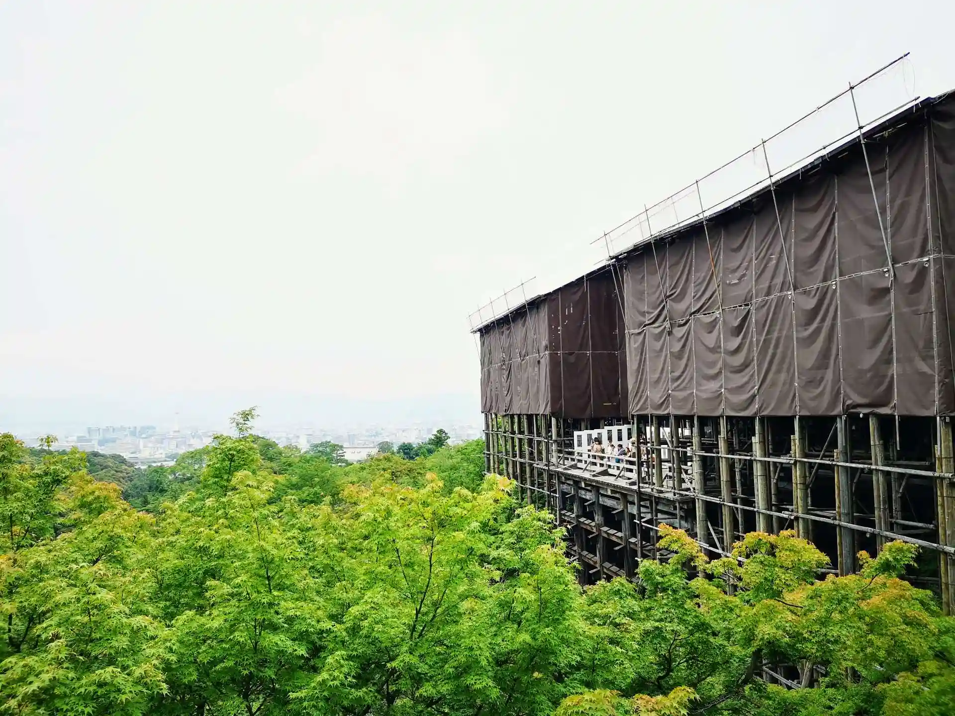 清水寺にて御朱印頂きました。現在、工事中で清水の舞台に出る事は出来ませんが工事用のシートで全面が被われた姿もこの時だけの珍しい風景です。