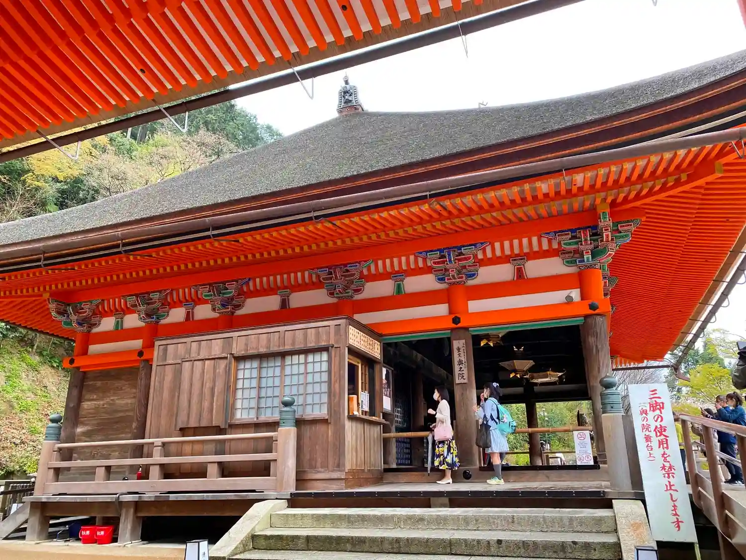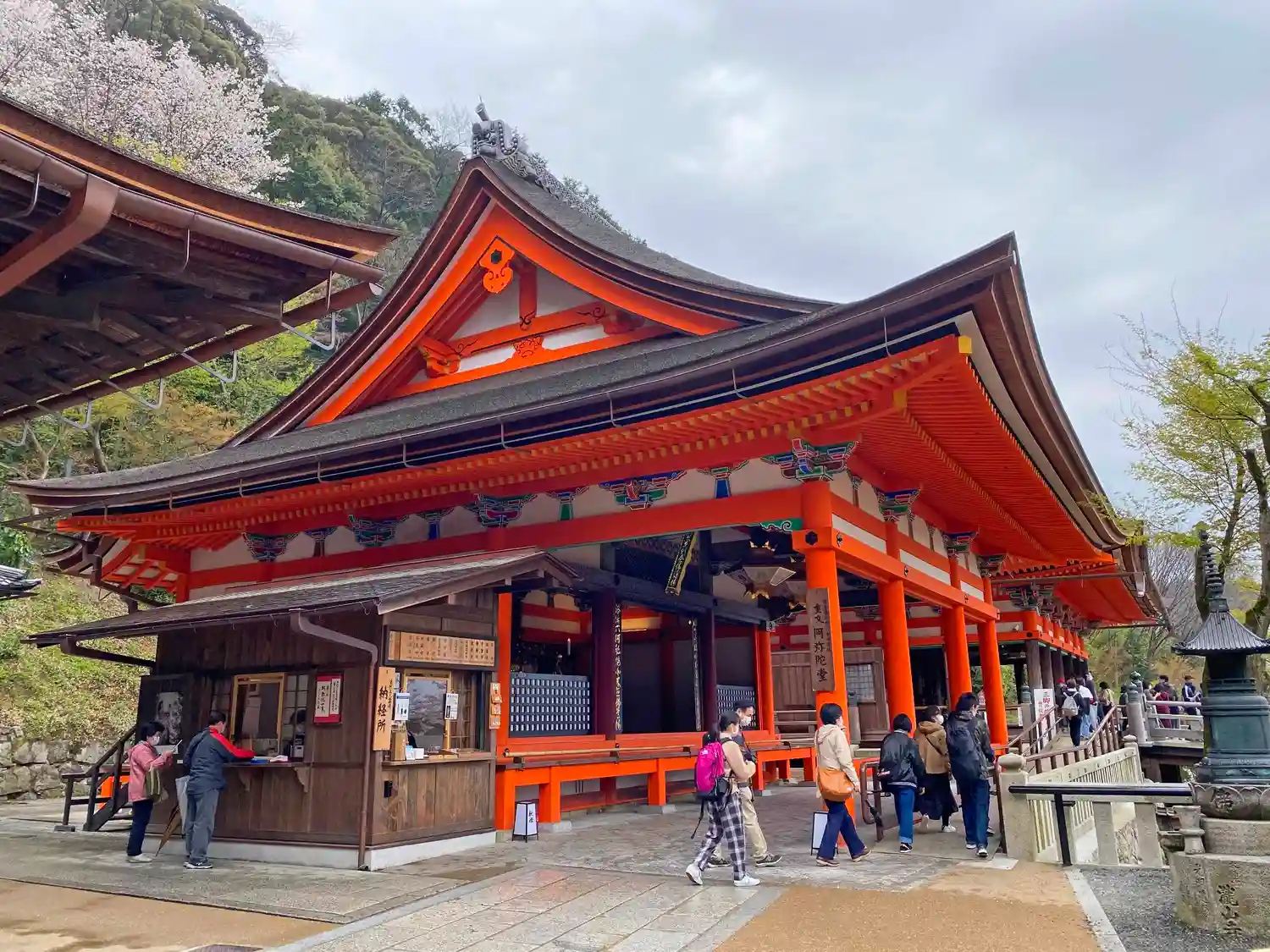 本堂、舞台への入場口と券売所の…