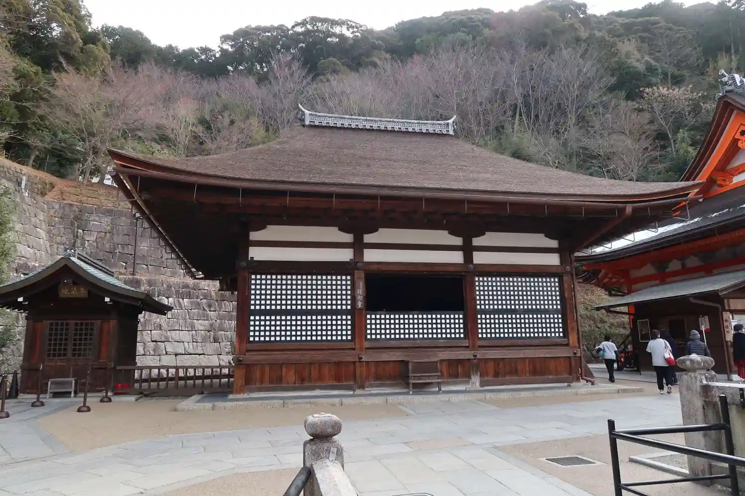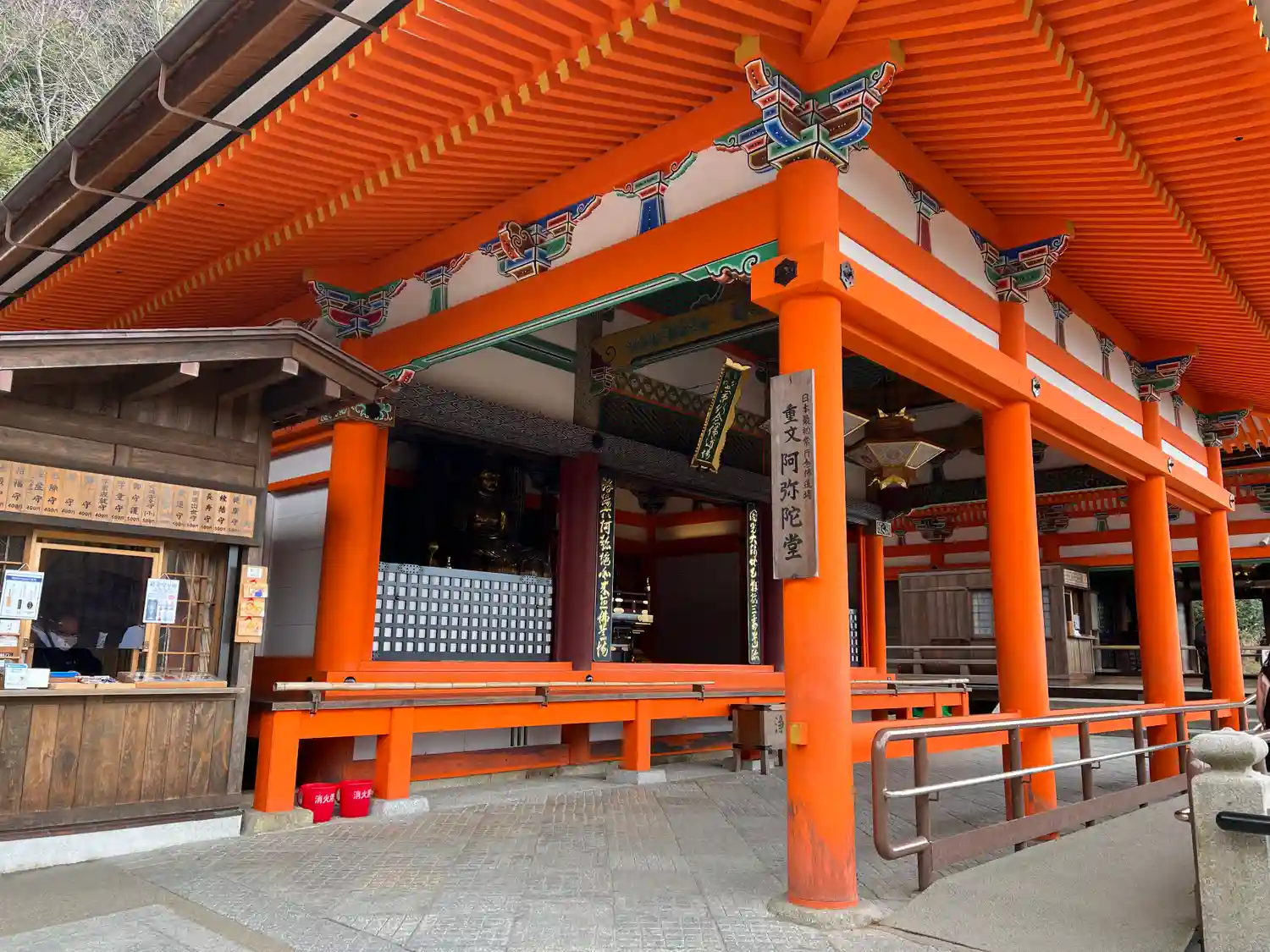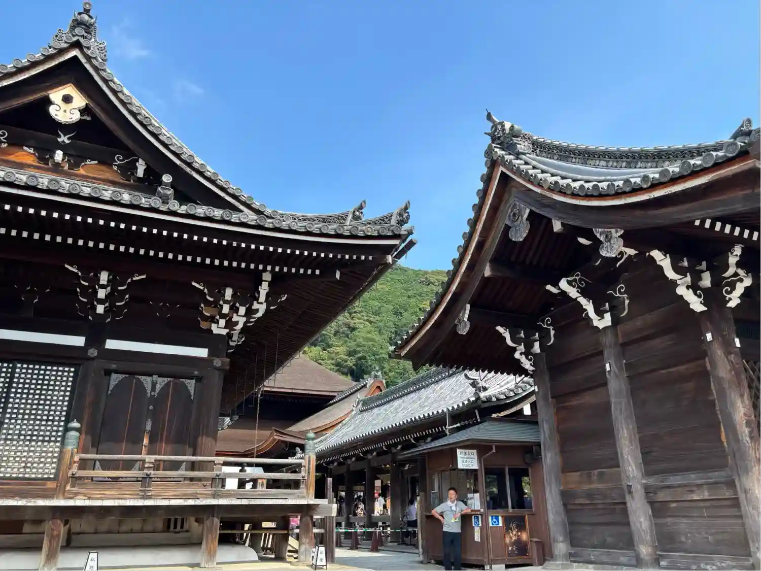 本堂、舞台への入場口と券売所の…