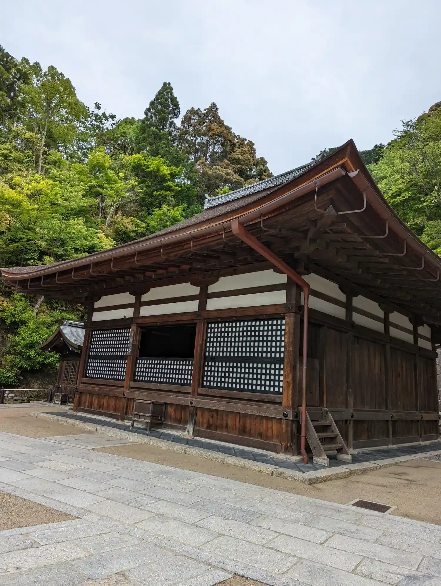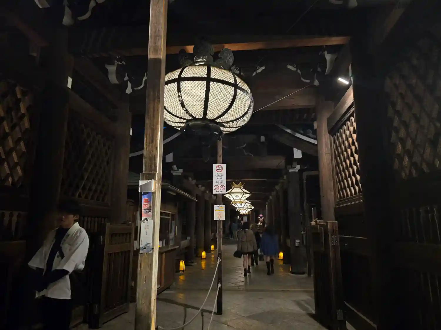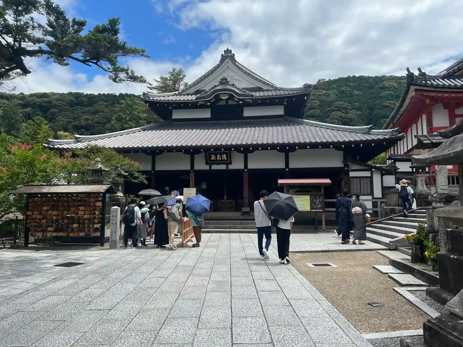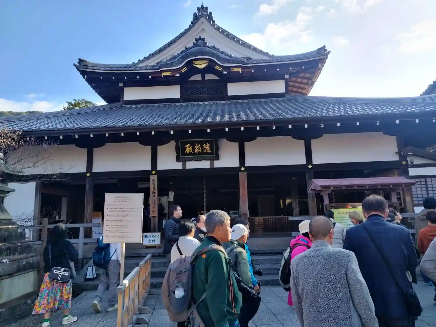 本堂、舞台への入場口と券売所の…