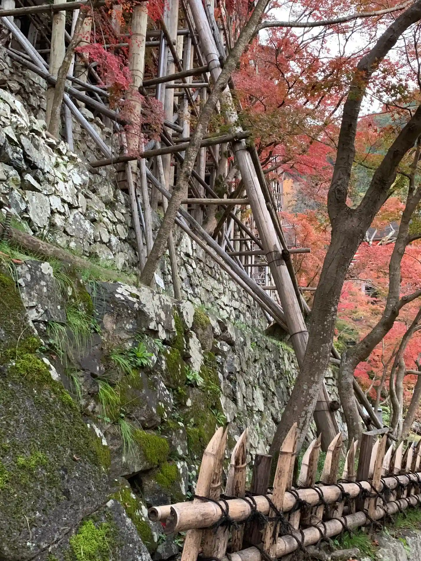 景観を損なわないよう、修繕のための櫓はすべて木・竹材などで組まれております。