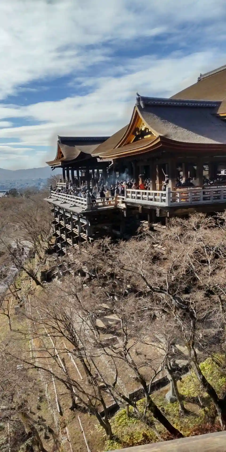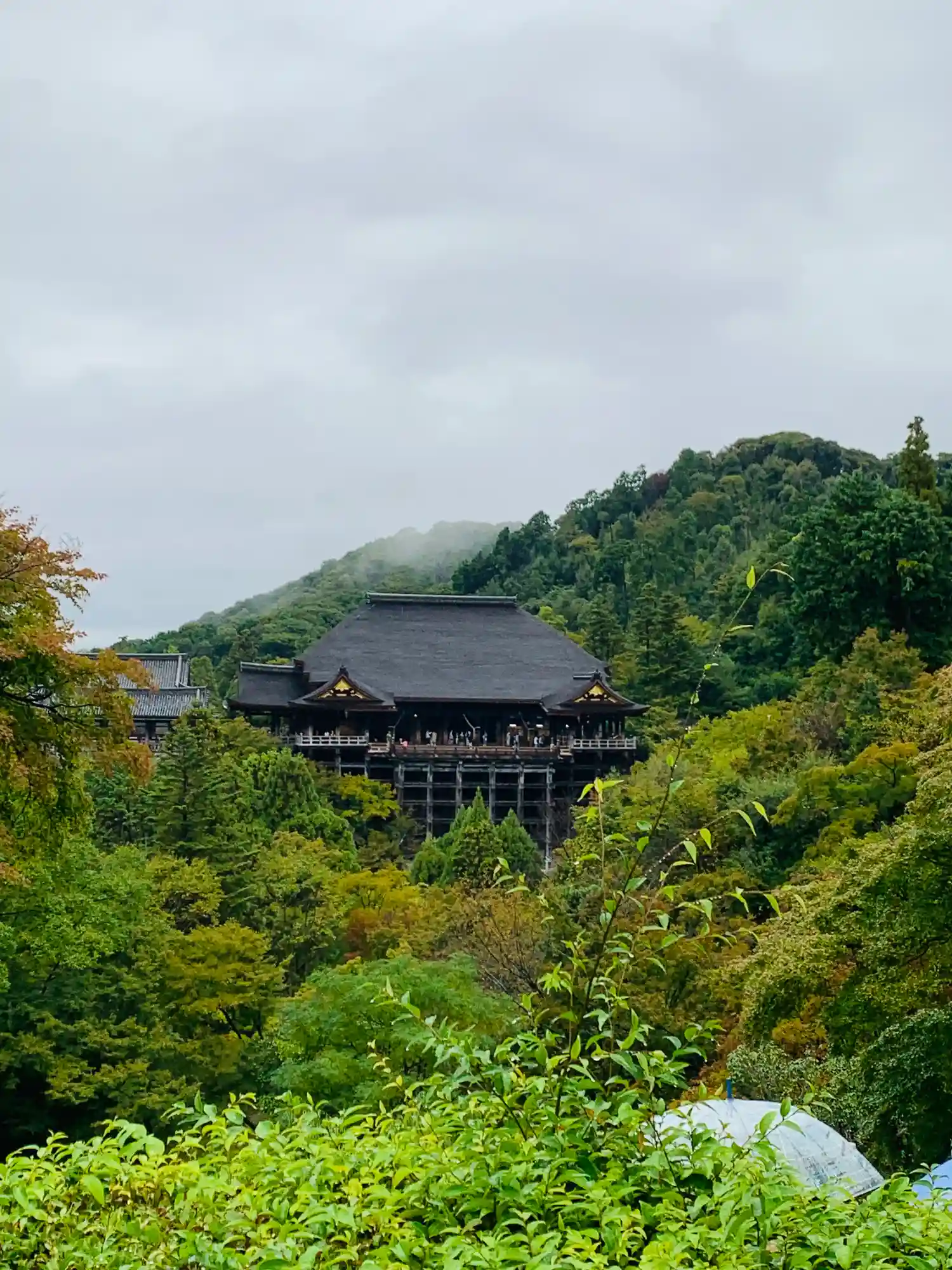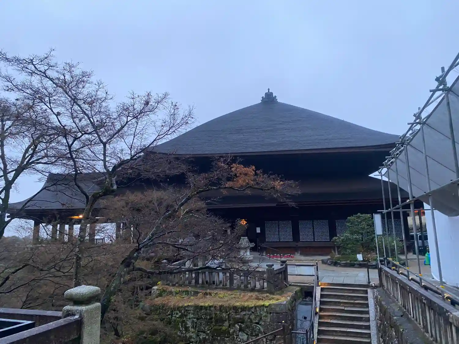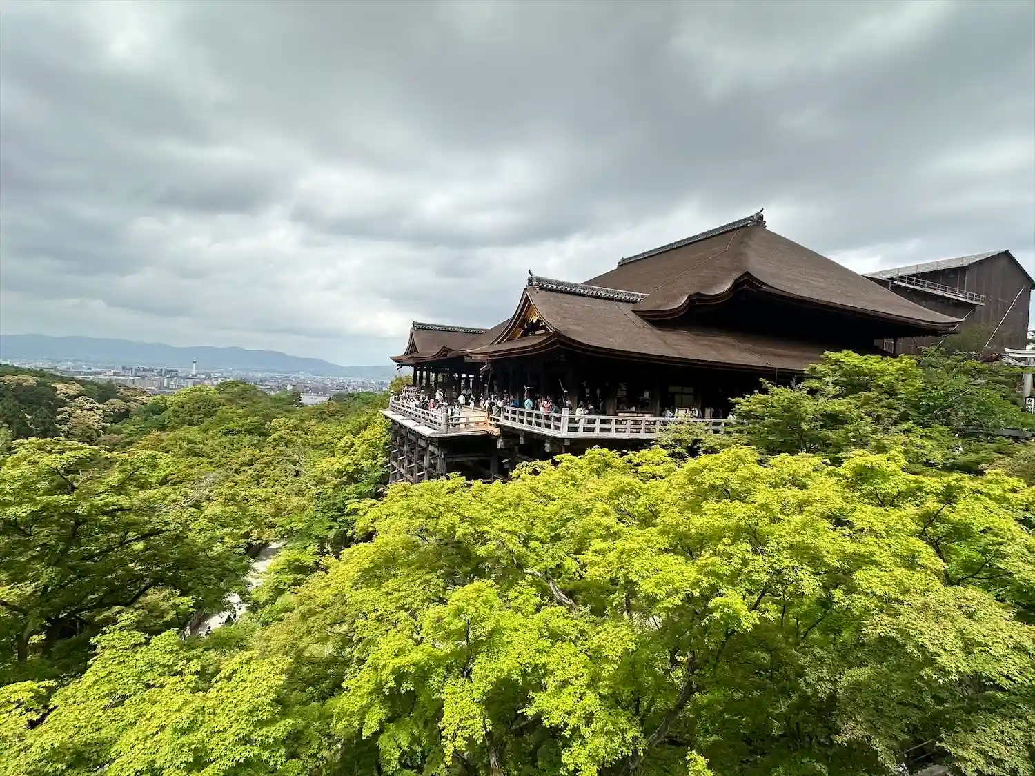 奥の院から「大修理」中の本堂。「清水の舞台」をはじめ全体が覆われていましたが、今年の2月に終了しました。
