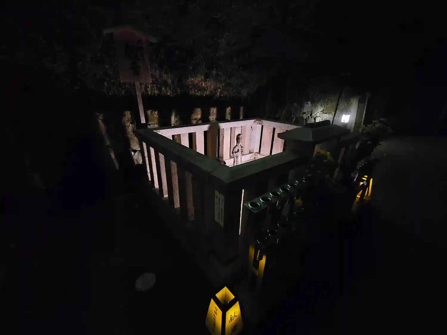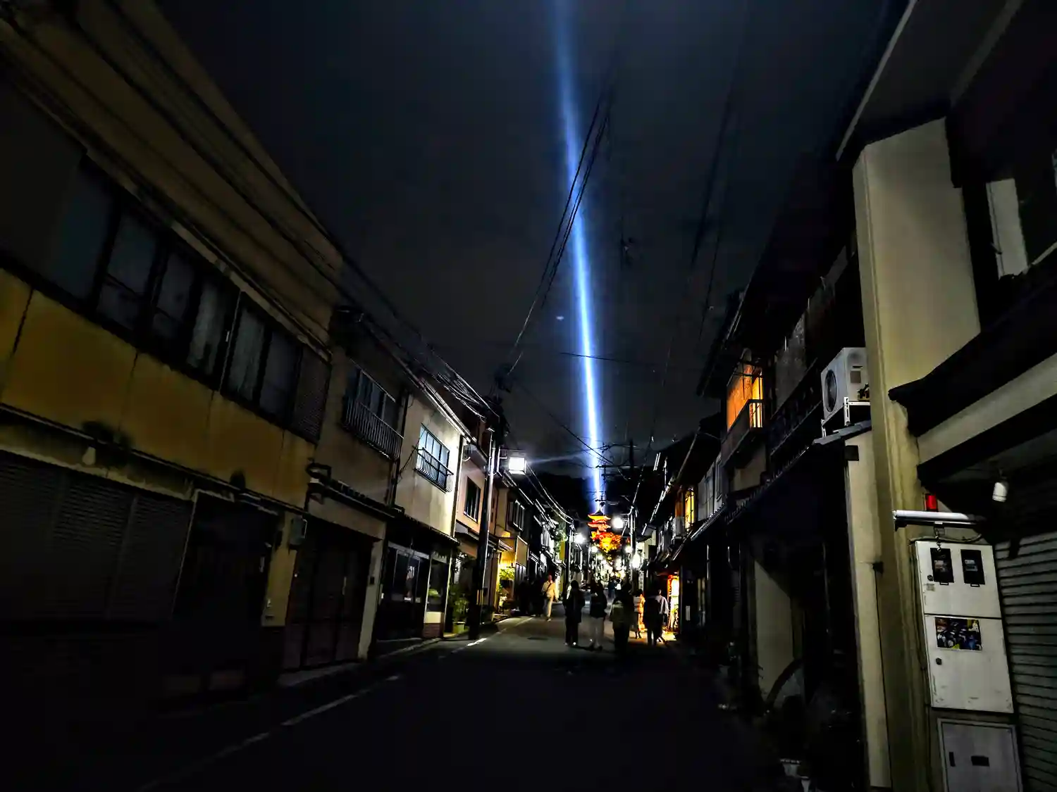 名物東山妙法レーザー。霊を導くために極楽浄土(※この場合はインド)の方角を指し示している。