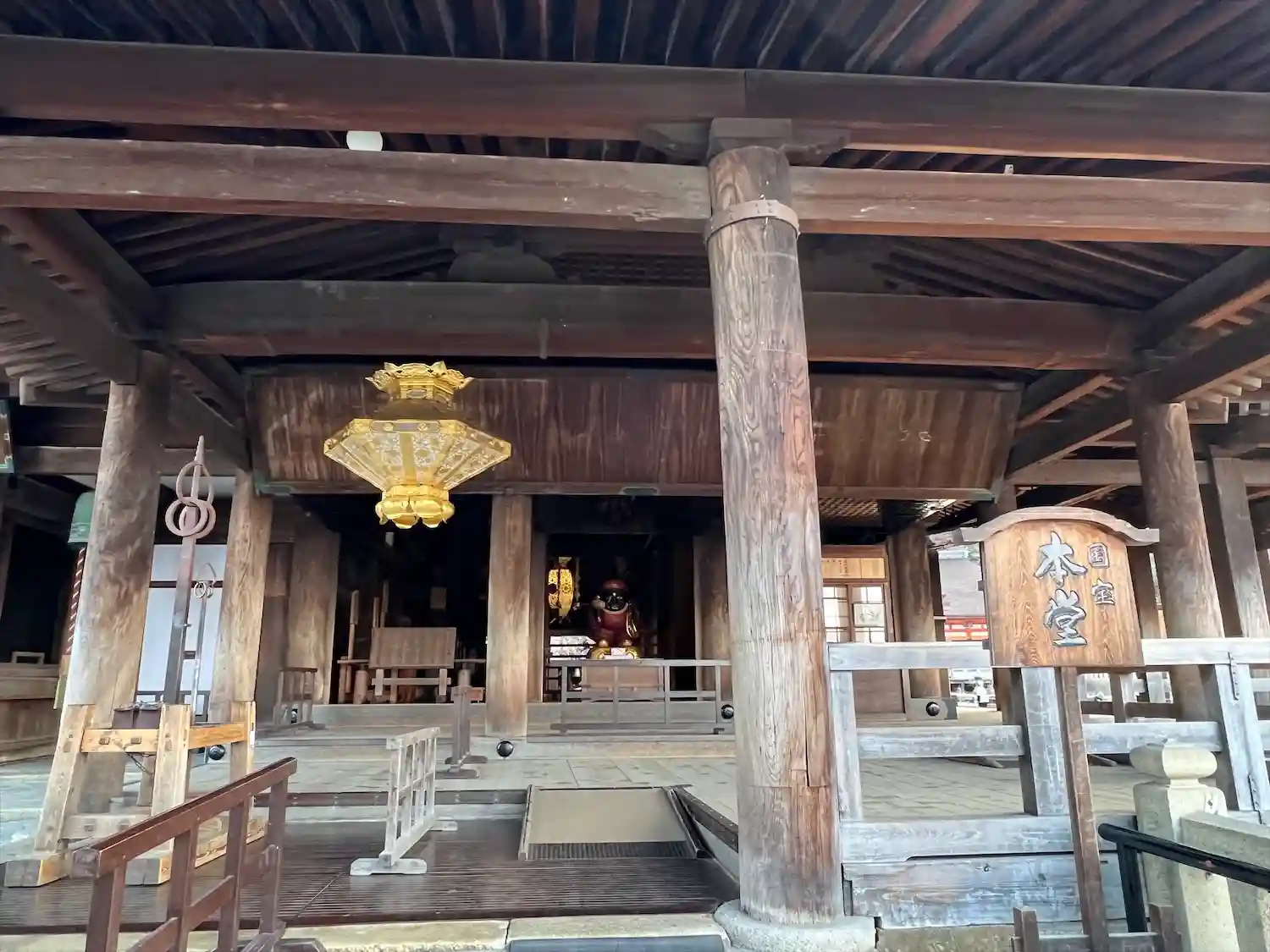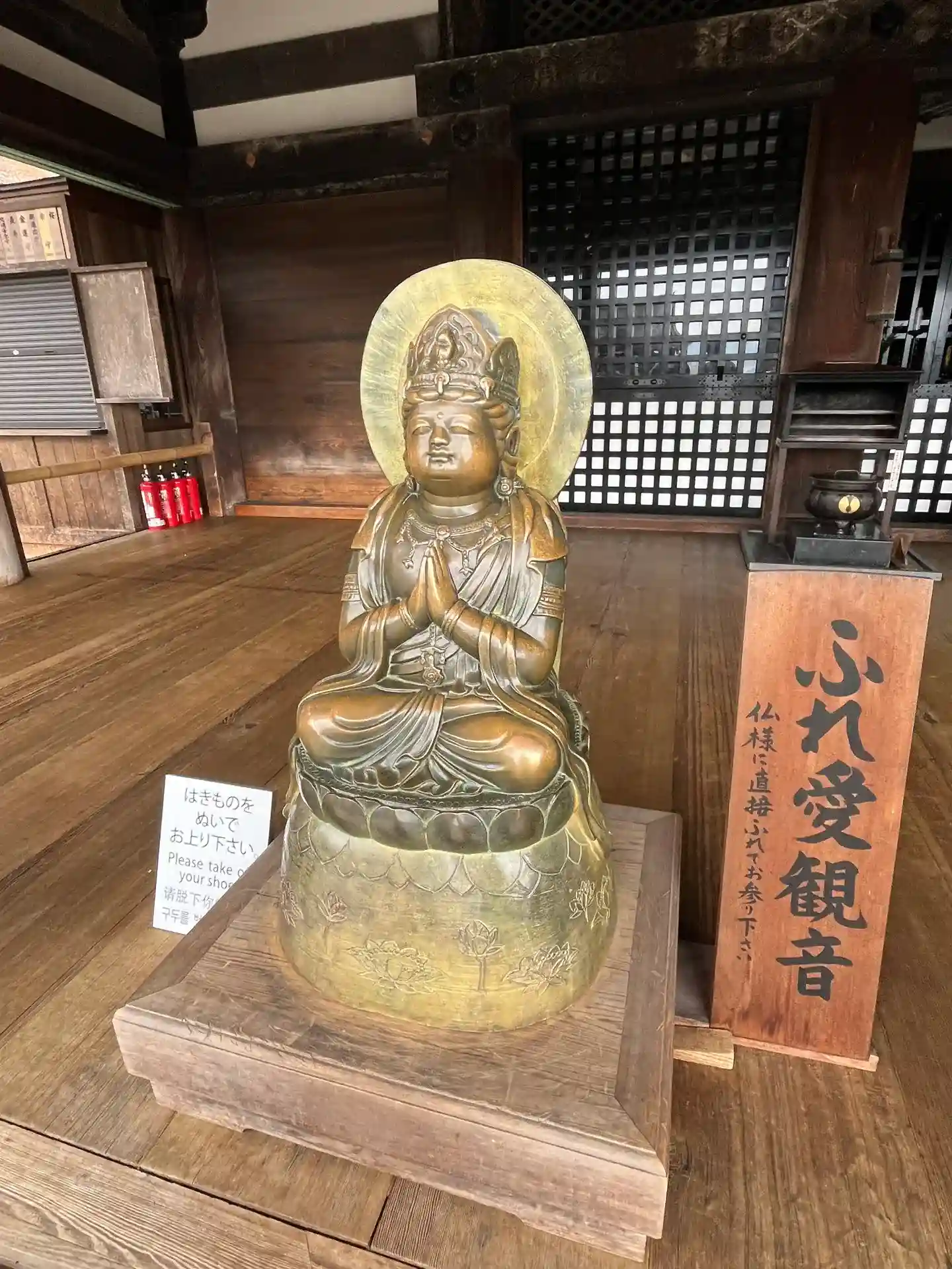 特別に本堂の内々陣に入れる。観音様を至近距離…