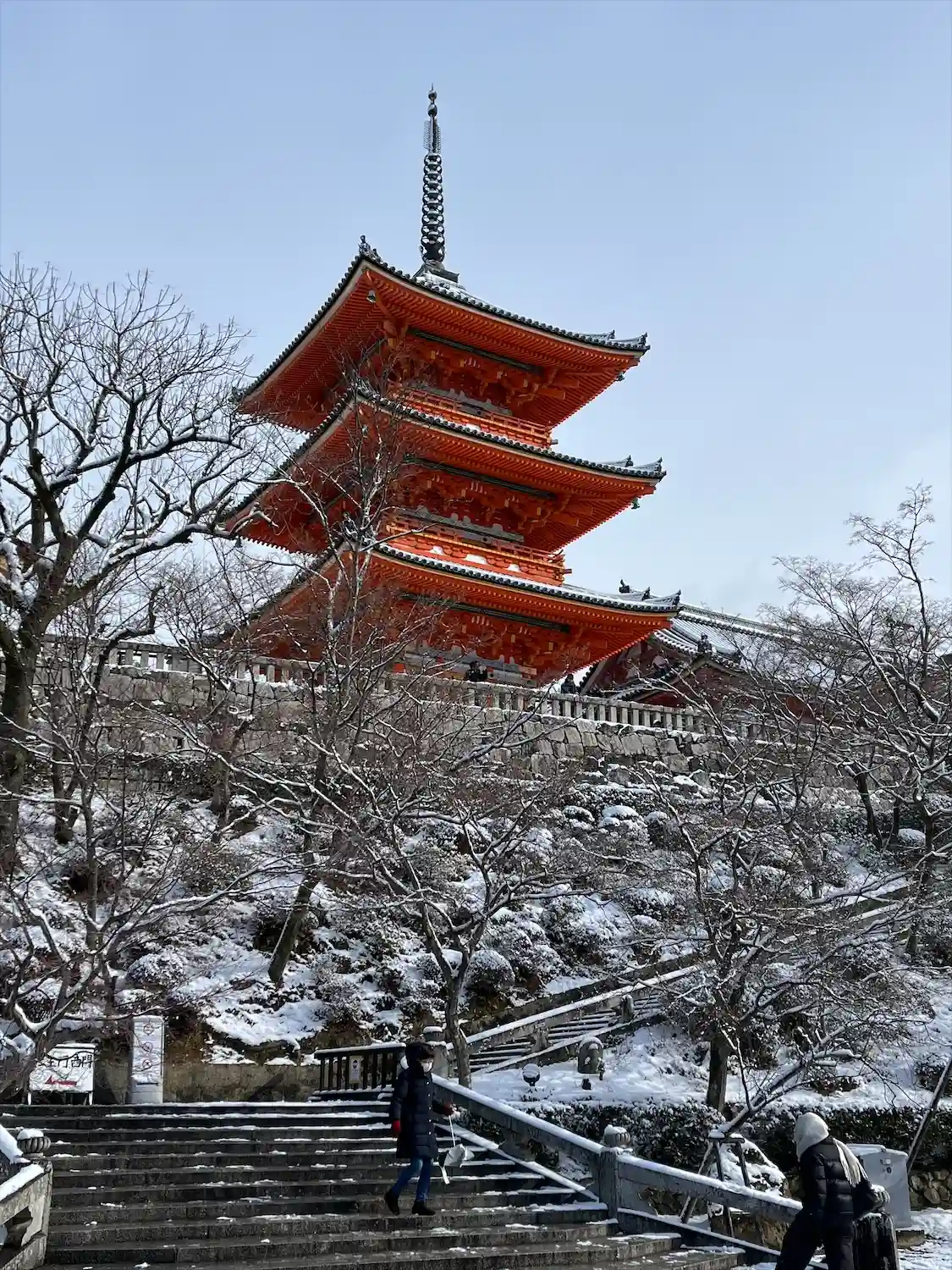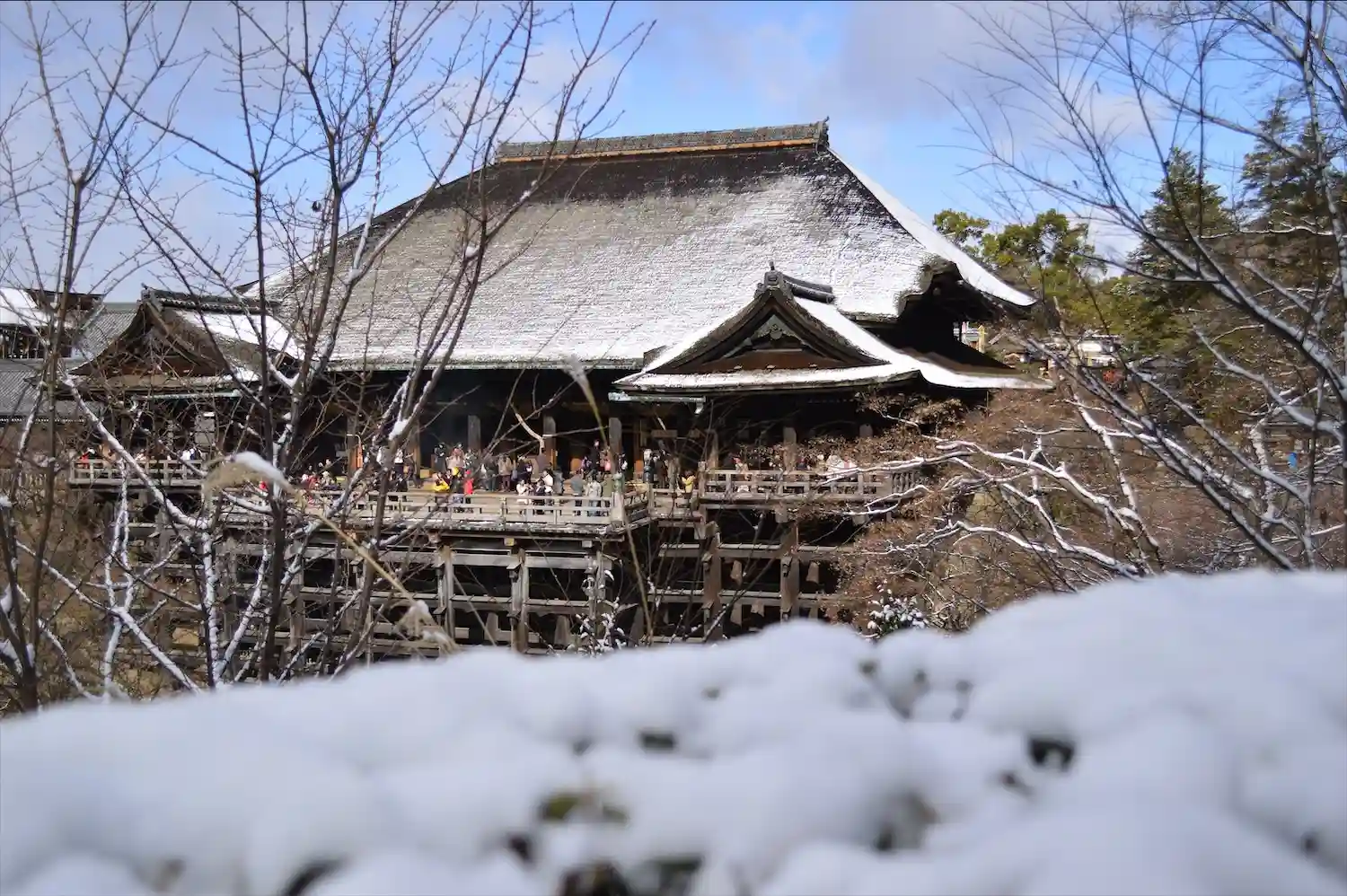 こちらも雪が降ってる日に行きました。雪のせいか、清水の舞台のせり出していると…