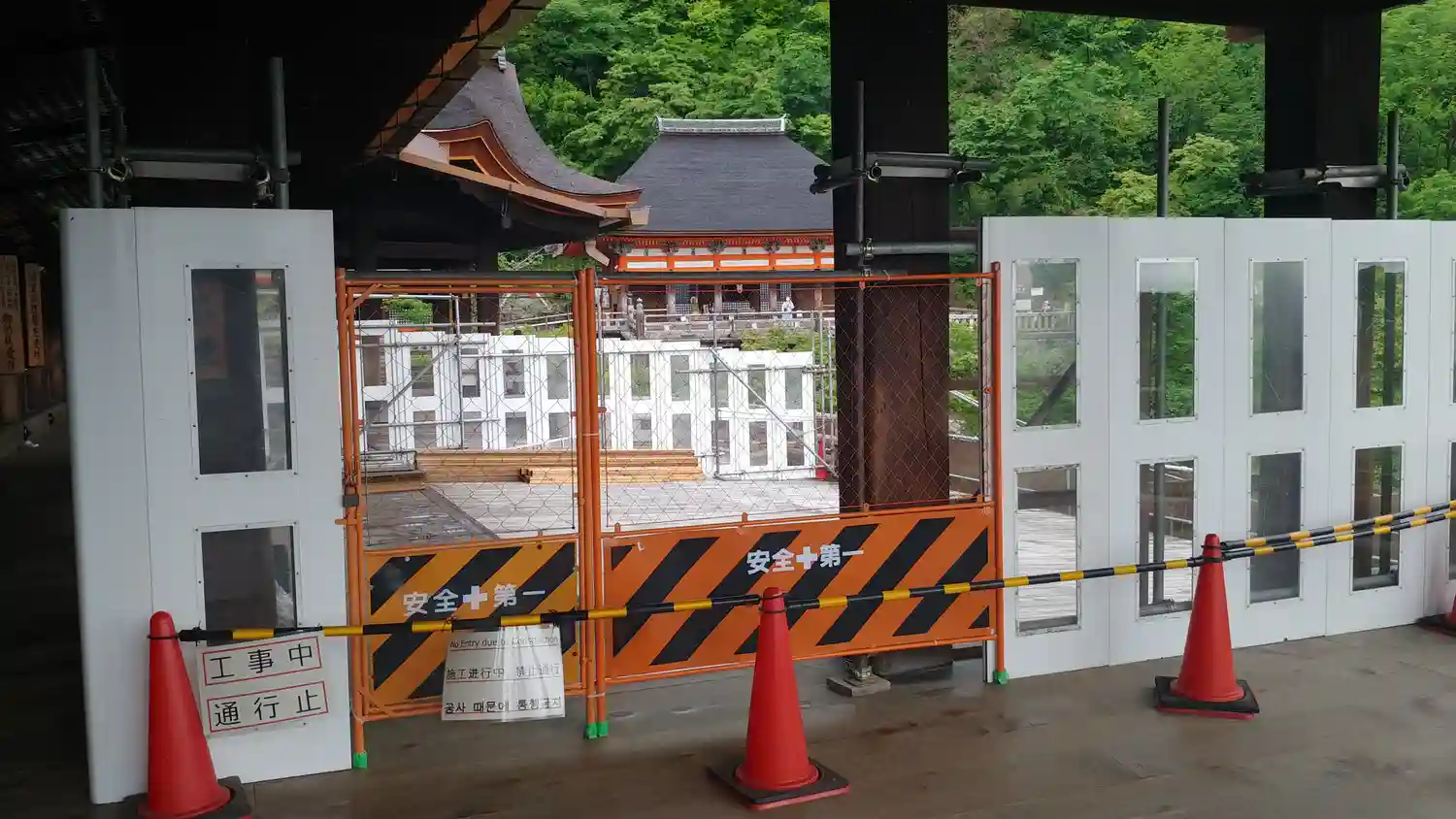 修復中も通常通り拝観は可能ですが、舞台は常時より狭くなっております。
