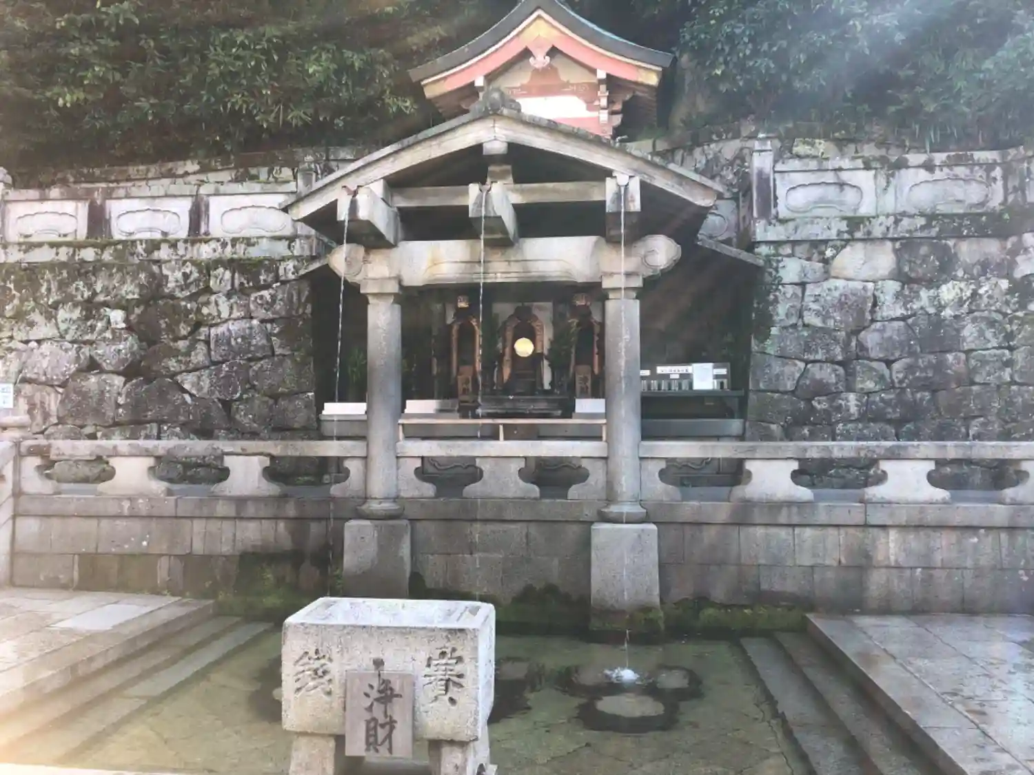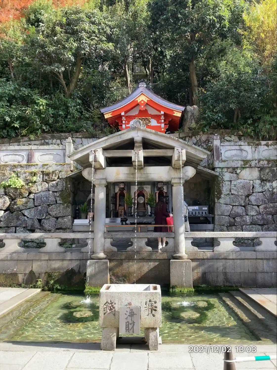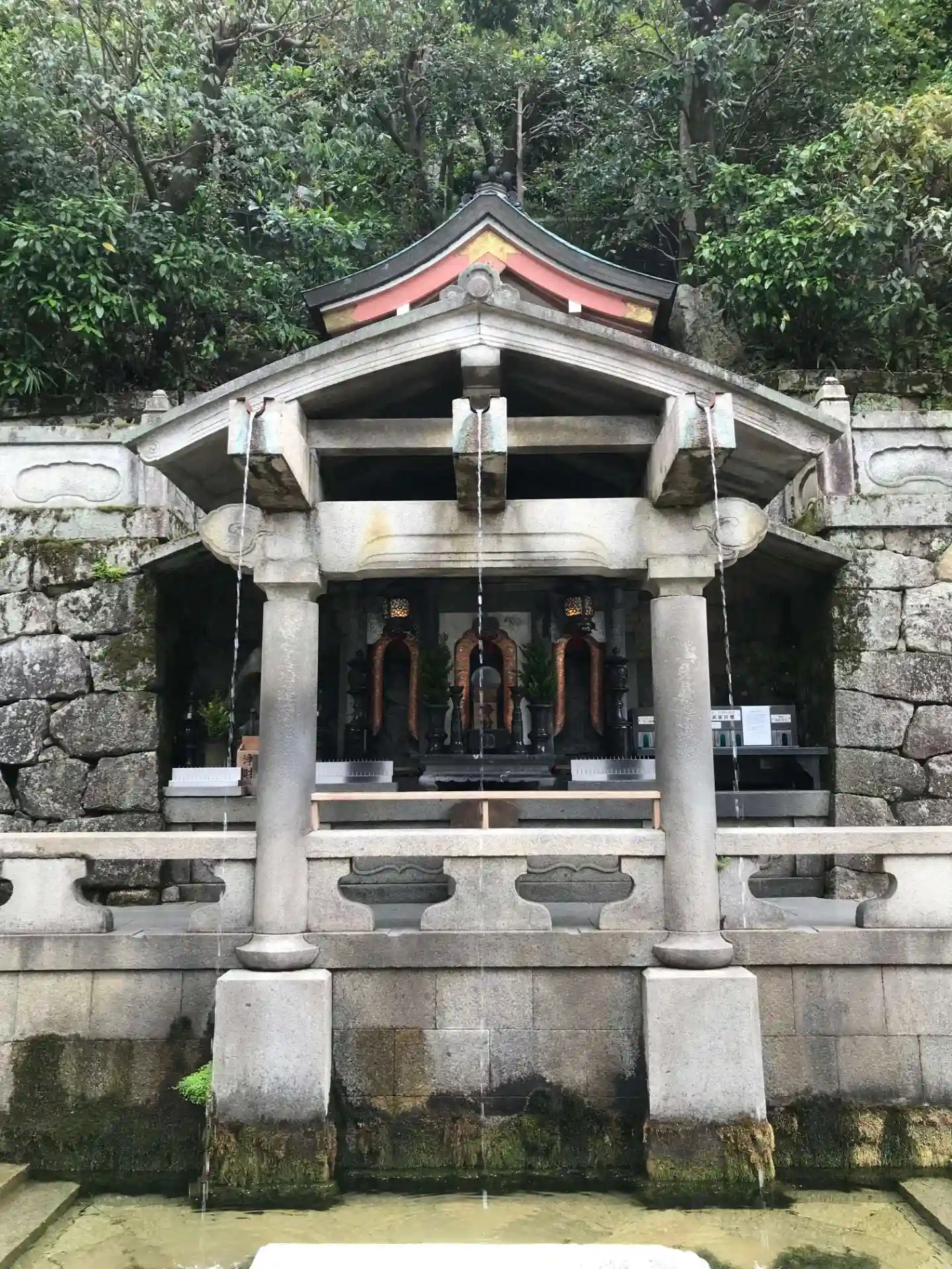 修繕工事で自慢の舞台は見れなかったけど清水の由来にもなった所は見れたのでよかったかな。