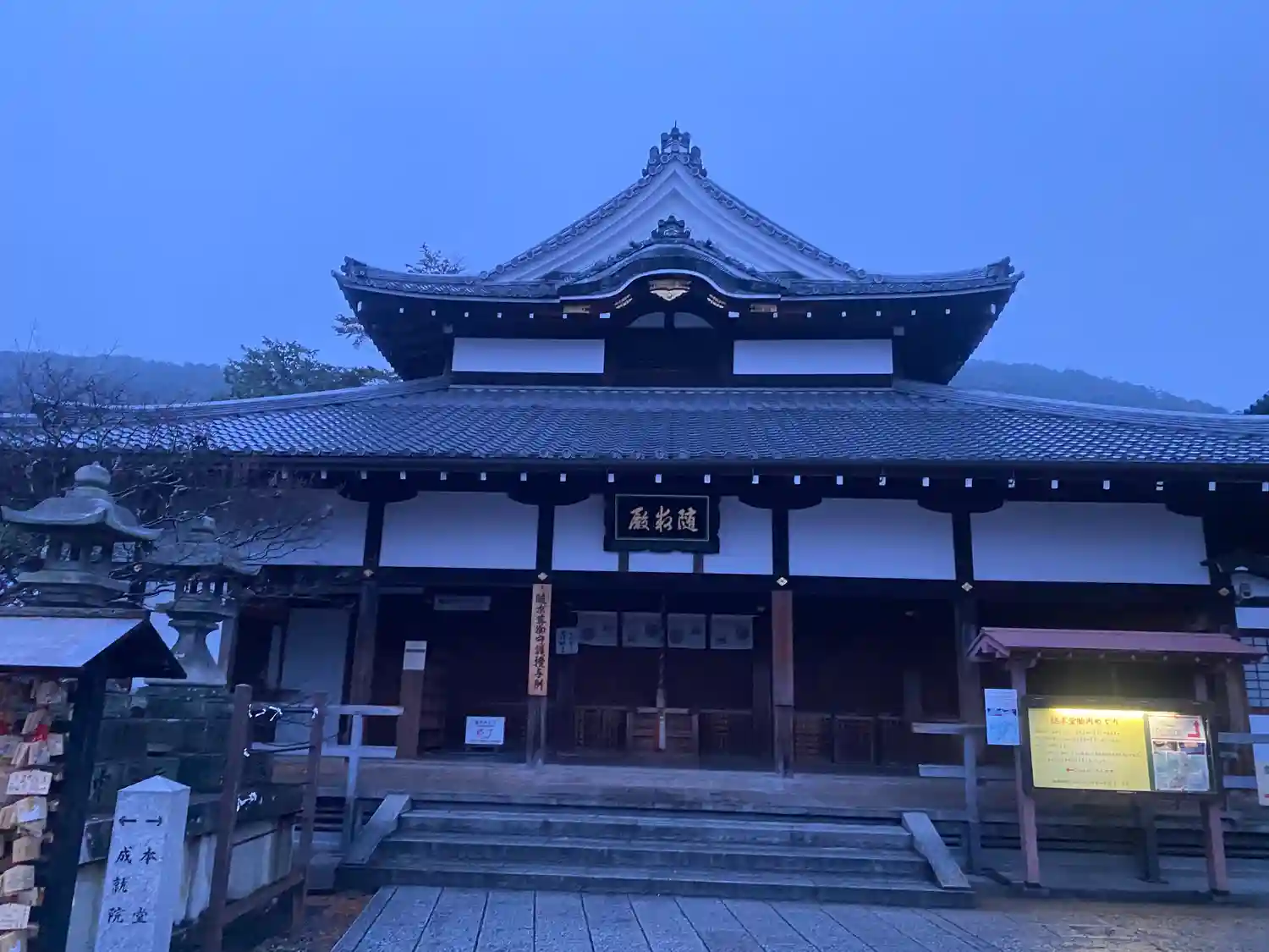 朝6時。煌々と灯る寺灯り。