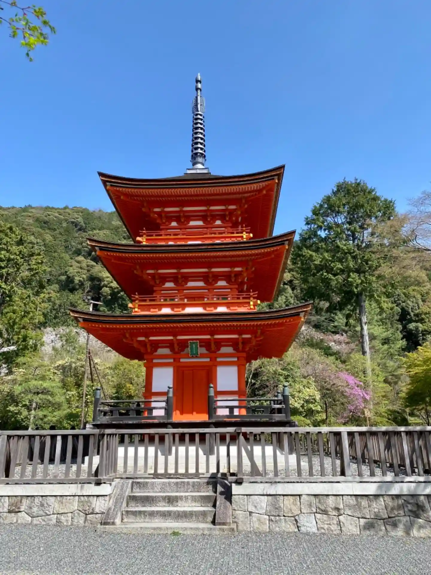 清水寺の塔頭。「子安の塔」と呼ばれる三重塔があります。塔内に六センチほどの小観音を胎内に宿す千手観音を祀る安産の祈願塔として有名です