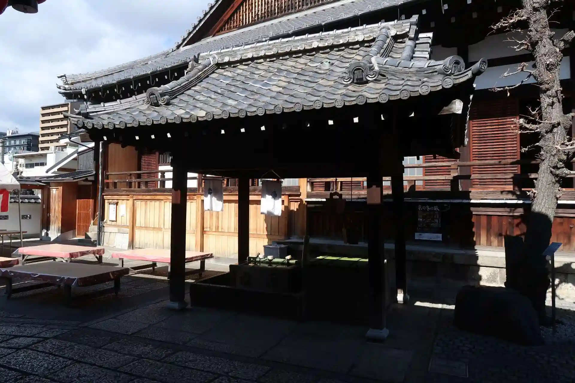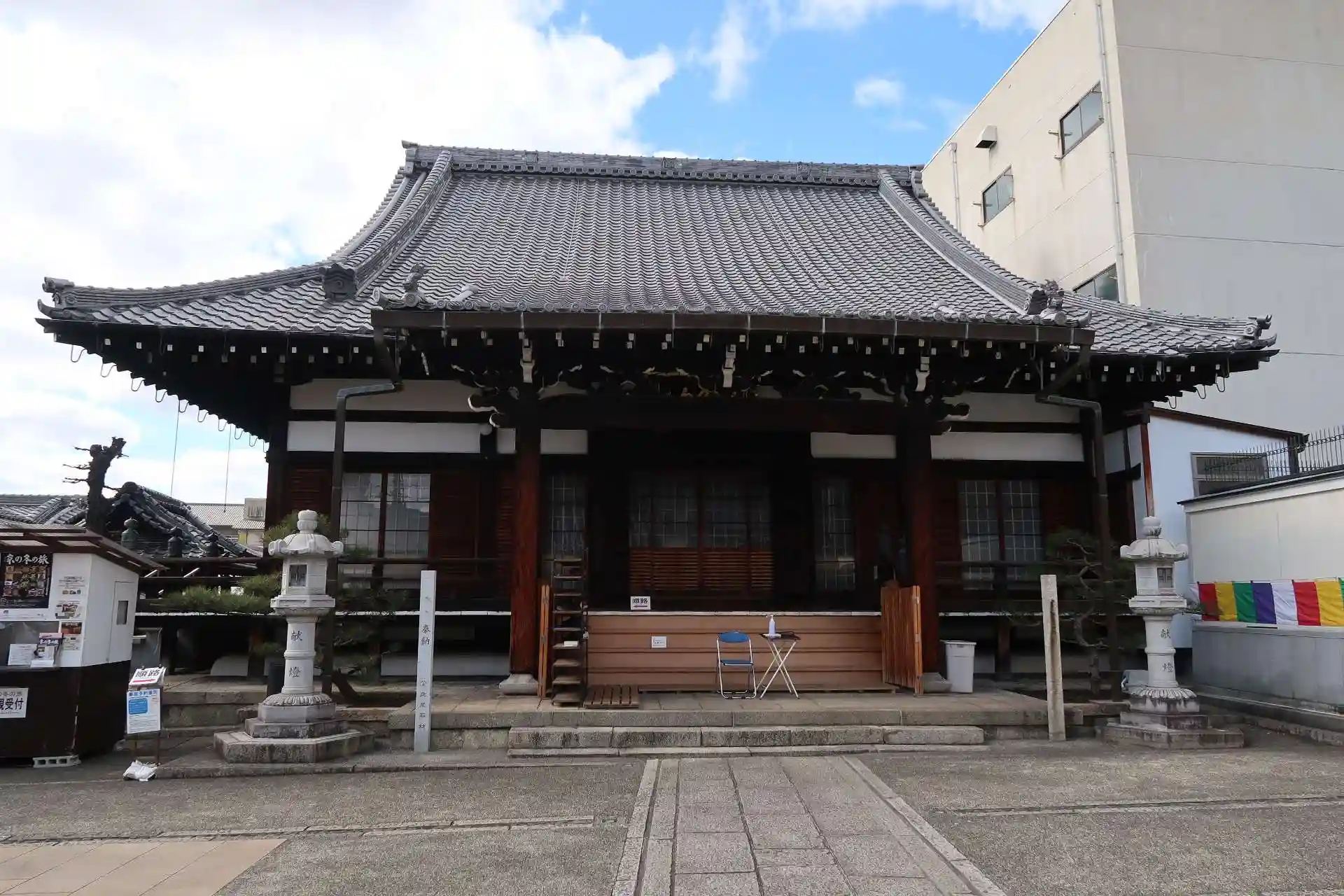 五条大橋を渡って河原町の近く、京都市の中心地。駐車場は無いだろうと思いつつ山門から境内を見ると駐車してある車があったので停めさせて頂きました。(8台位は駐車出来そう。)