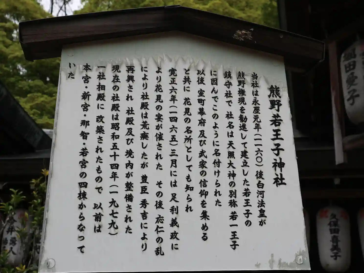 1160年(永暦元年)、後白河法皇が熊野権現を禅林寺(永観堂)の守護神として勧請され、江戸時代に祈…