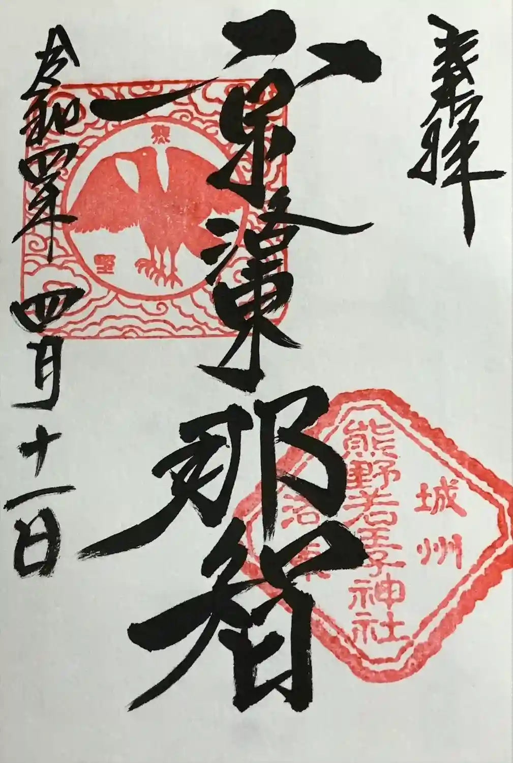 八咫烏 (判読難しいが)熊野